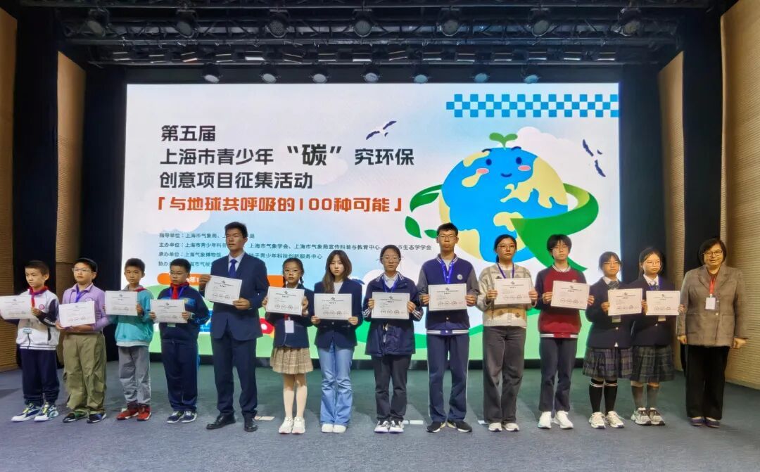 Recently, the final evaluation of the 5th Shanghai Youth "Carbon" Quest Environmental Innovation Project Call for Entries successfully concluded at the Shanghai Meteorological Museum. This competition was guided by the Shanghai Meteorological Service and the Shanghai Ocean Administration and jointly organized by the Shanghai Youth Science Promotion Association, the Shanghai Meteorological Society, the Shanghai Meteorological Service Publicity, Popularization and Education Center, and the Shanghai Ecological Society. Themed "100 Possibilities of Breathing with the Earth," the event aimed to stimulate teenagers' attention to and reflection on climate change and environmental protection, while cultivating their scientific innovation capabilities and concept of sustainable development. After intense competition, the project results from the elementary and middle school division students of Shanghai High School International Division stood out, winning two first prizes, two second prizes, and six third prizes. Additionally, our school received the Outstanding Organization Award, showcasing the exceptional research strength and innovative ability of our students and science innovation team.