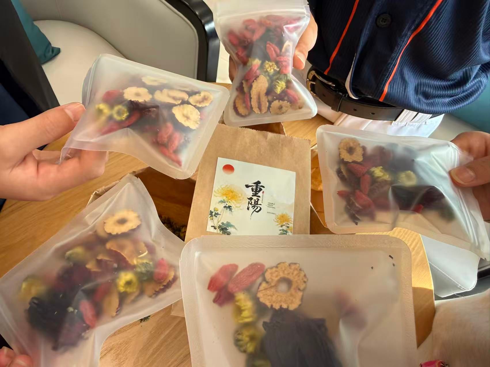 As the concluding part of the activity, students engaged in three meaningful tasks: “collage poem creation,” “writing thank-you cards,” and “making tea bags for elders.” They placed their handmade tea bags, creative collage poems, and heartfelt cards into kraft paper bags, presenting these sincere, youthful gifts to their elders during the golden autumn season.