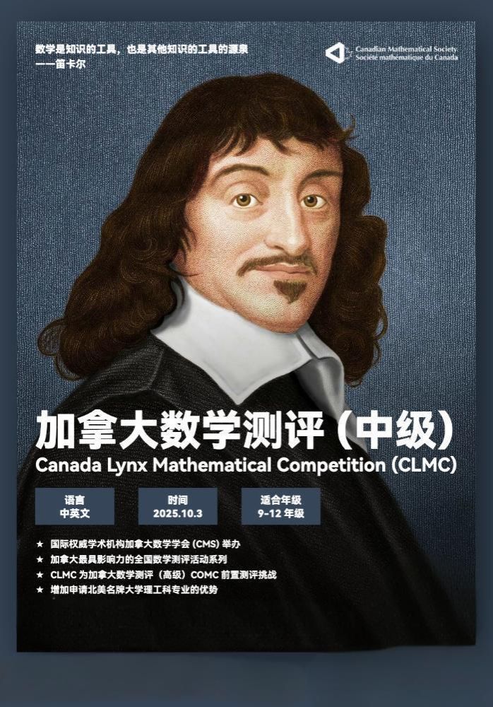 The Canada Lynx Mathematical Competition (CLMC) was launched by Canadian Mathematical Society (CMS) for students in grades 9-12. This competition was created to foster an interest in mathematics among students regardless of their skill level, to increase student confidence in their math abilities, and to present mathematics as a fun and playful subject to students. It serves as great practice for students with advanced mathematical skills who wish to participate in the prestigious Canadian Open Mathematics Challenge (COMC) that takes place in October each year.