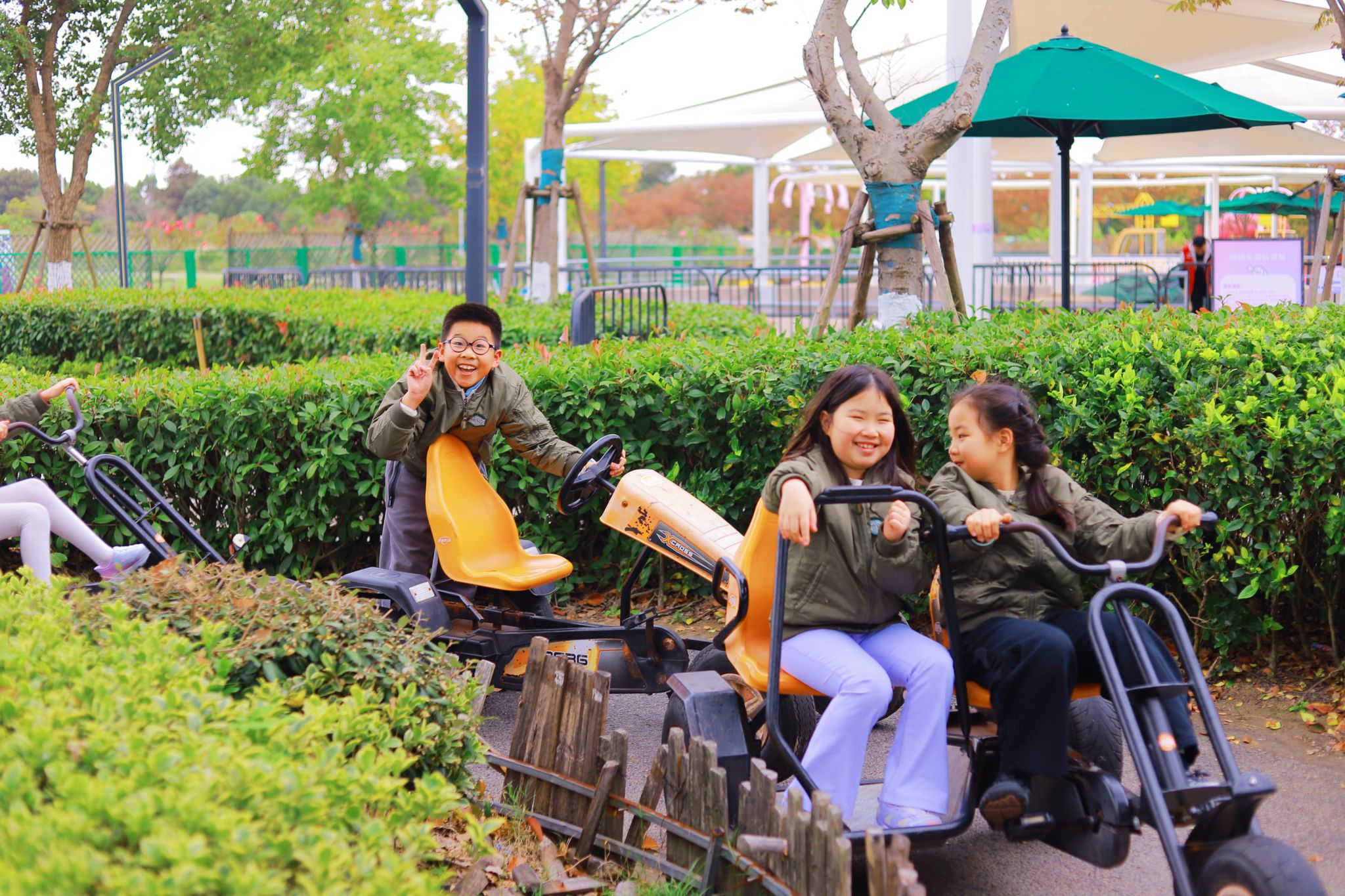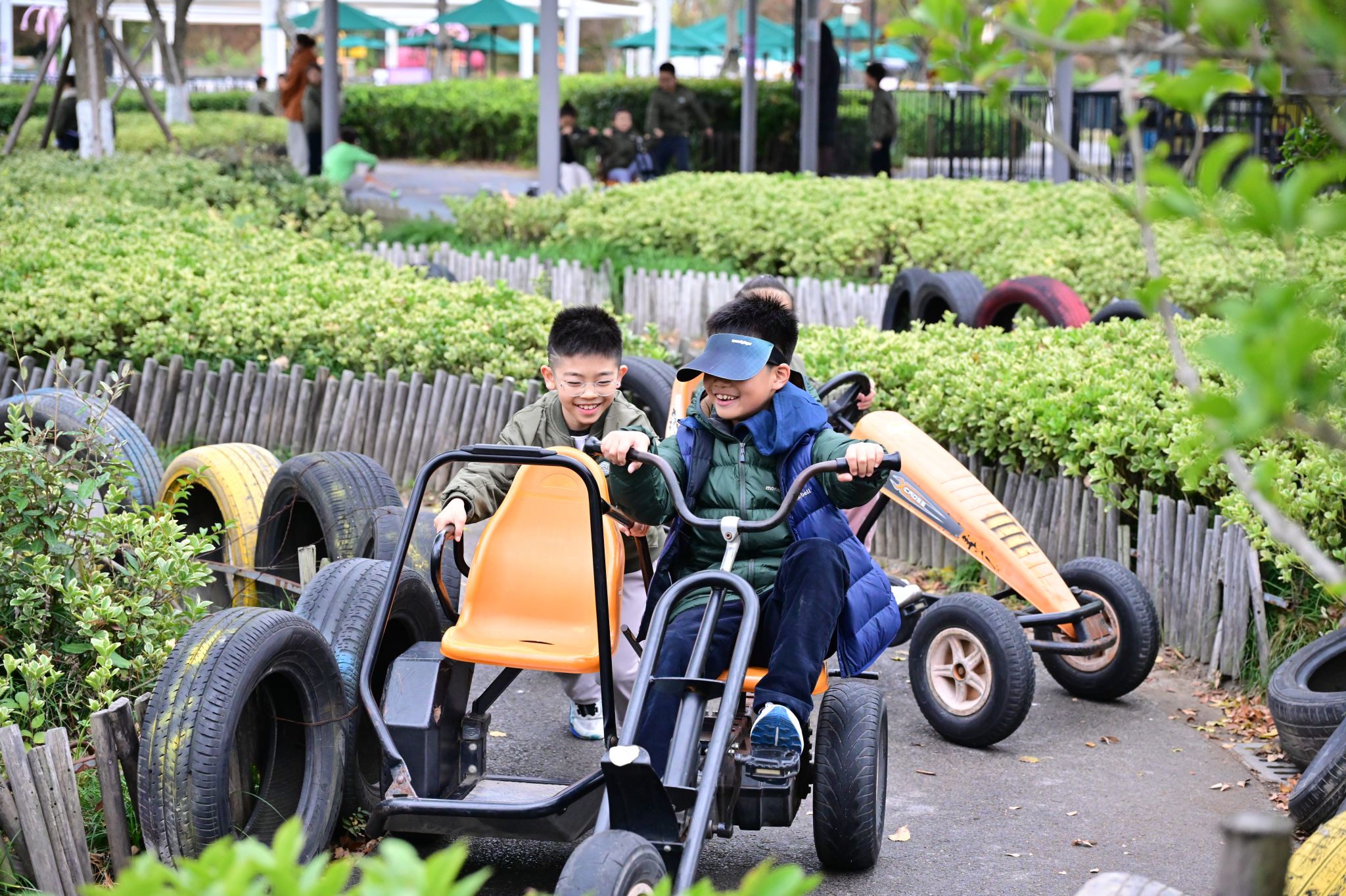 Older children also tried go-karting. Those driving solo focused intently on steering, while pairs worked together—one driving, the other navigating. When a kart got stuck on a curve, students quickly stepped in, pushing it free and directing others to reverse and clear the path. This spontaneous teamwork highlighted not only their quick thinking but also their sense of responsibility.