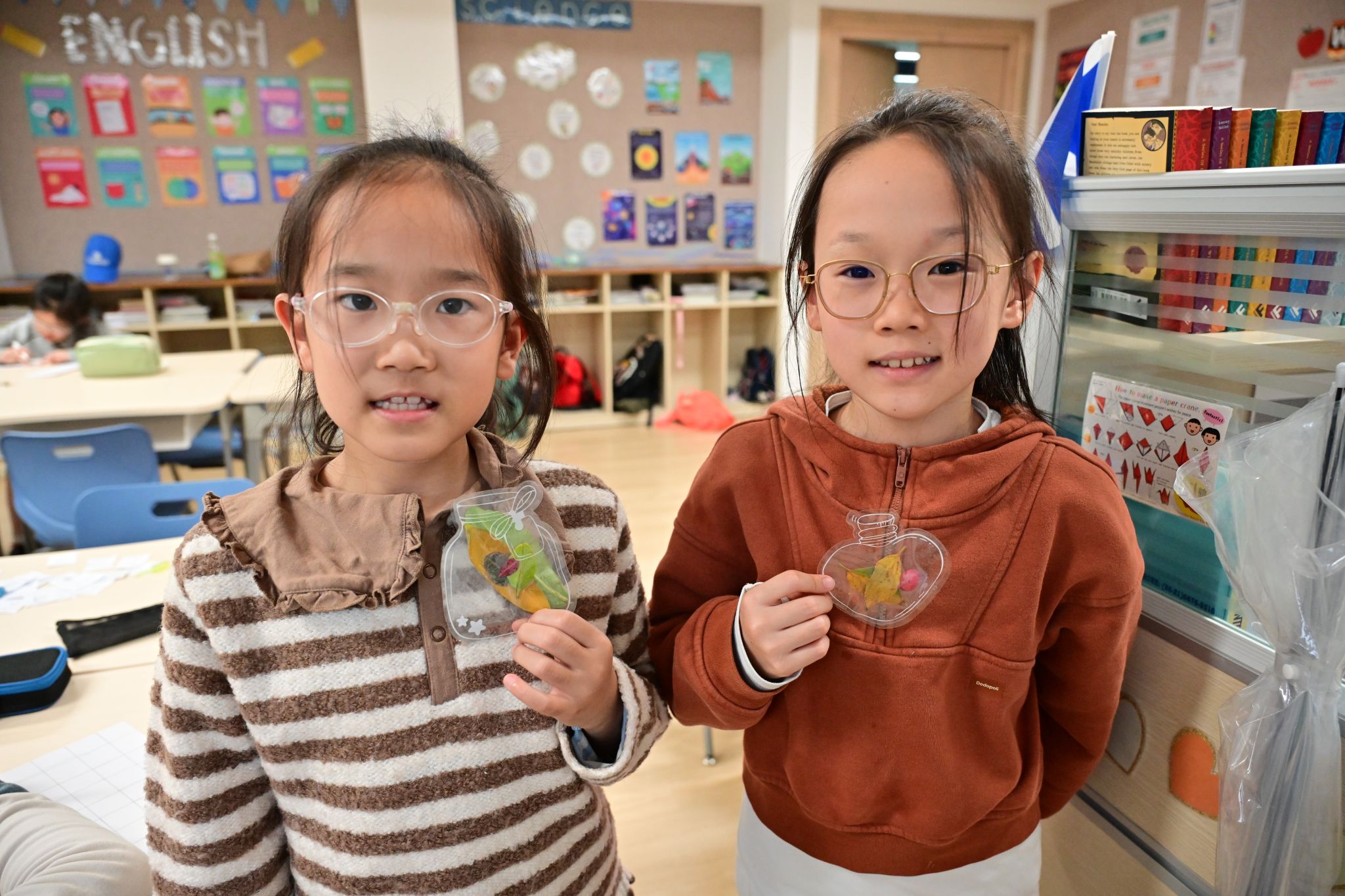 In the afternoon, students took part in a “Discover Autumn” nature session. Walking along garden paths, they carefully observed leaf veins and color changes, then selected their favorite leaves to create unique bookmarks—preserving not just autumn memories, but also their growing connection to the natural world.
