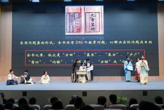 On November 23, the Joint Mathematics Drama Performance, hosted by the Mathematics Education Branch of the Chinese Mathematical Society and co-organized by East China Normal University’s School of Mathematical Sciences, Shanghai Key Laboratory of Pure Mathematics and Mathematical Practice, and Shanghai High School International Division (SHSID), was successfully held at SHSID’s Hsi Auditorium. Eight teams from universities and high schools in Shanghai, Suzhou, and Tongxiang came together, bringing iconic figures and ideas from mathematical history to life through drama, delivering a captivating blend of reason and art.