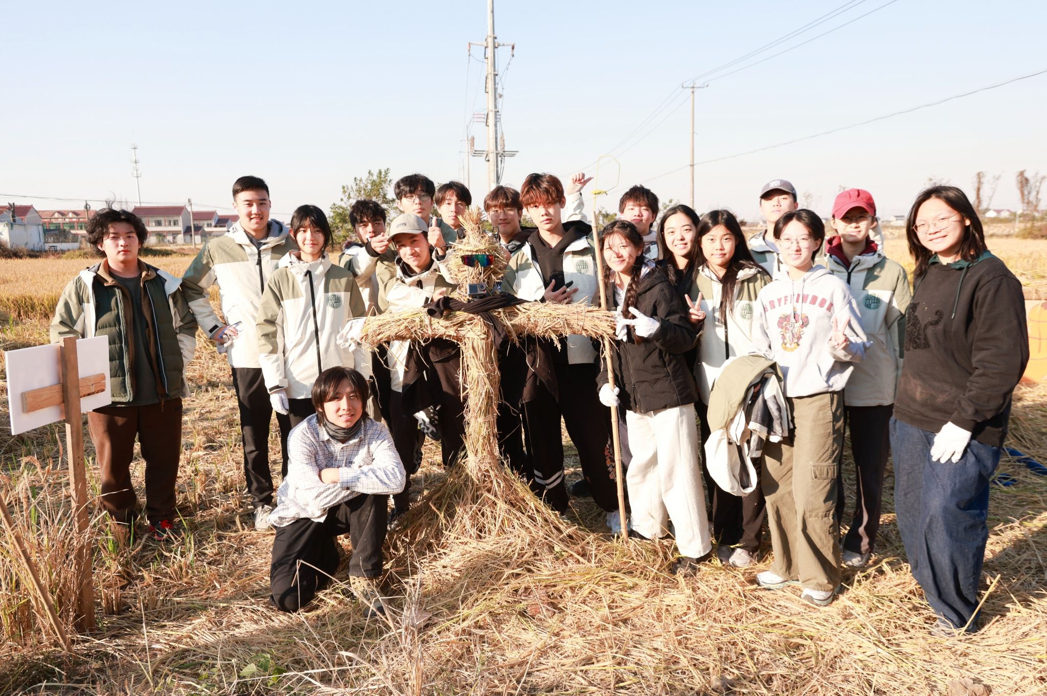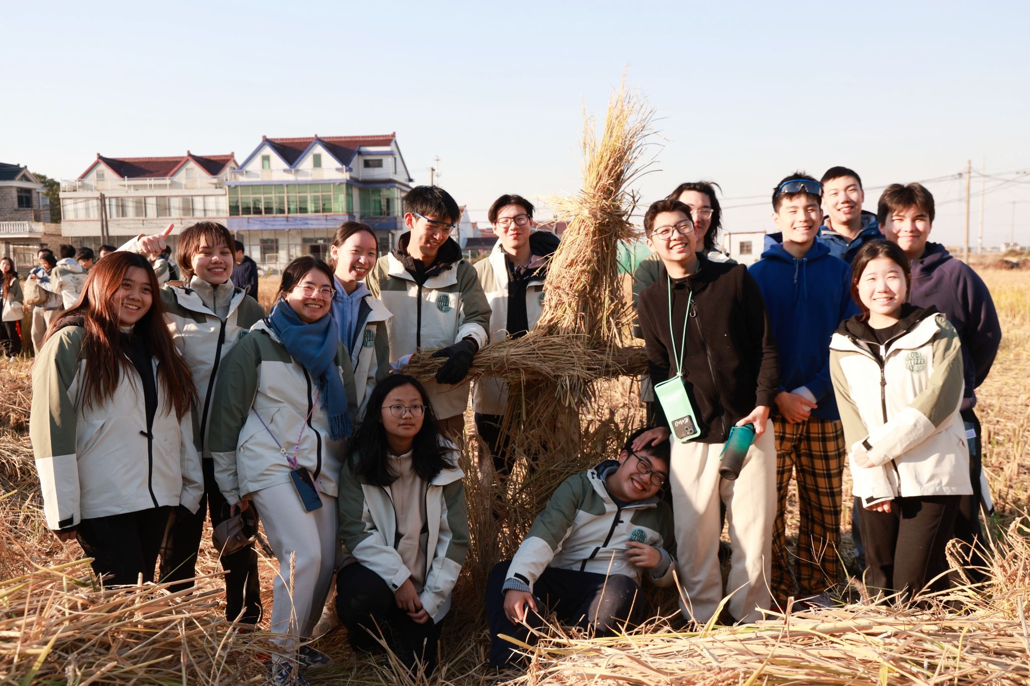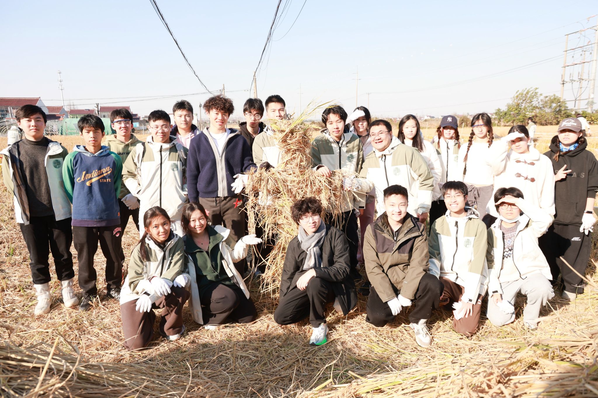 Afterwards, under the guidance of instructors, the students broke into groups to experience traditional farming—cutting and threshing rice. Working directly with the soil and grain, they gained a tangible appreciation for the effort behind each grain and the profound satisfaction of a successful harvest.