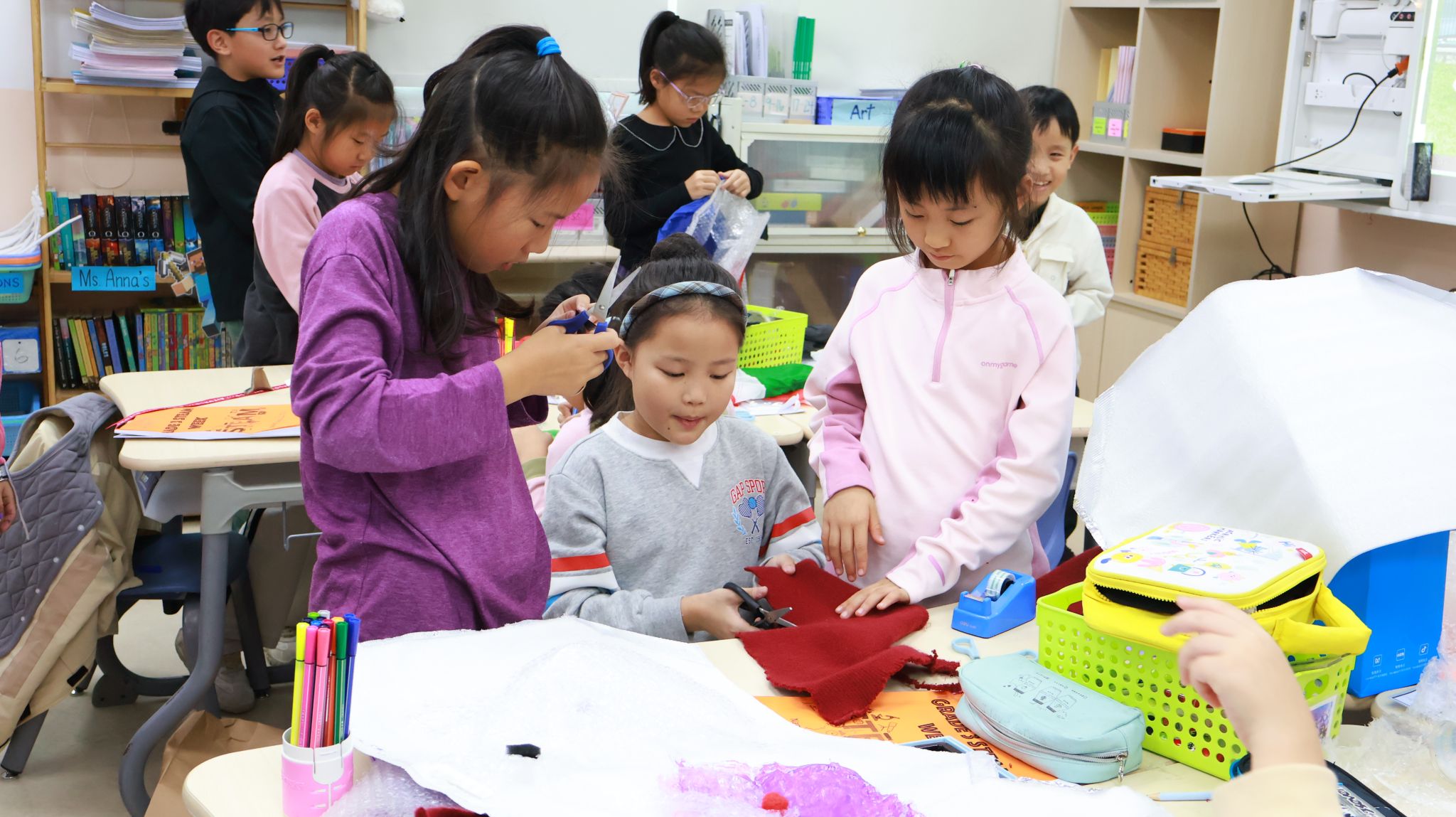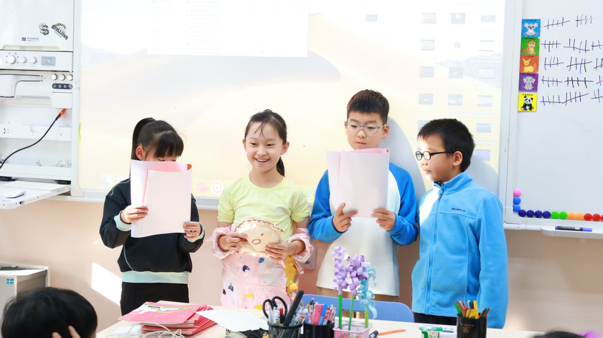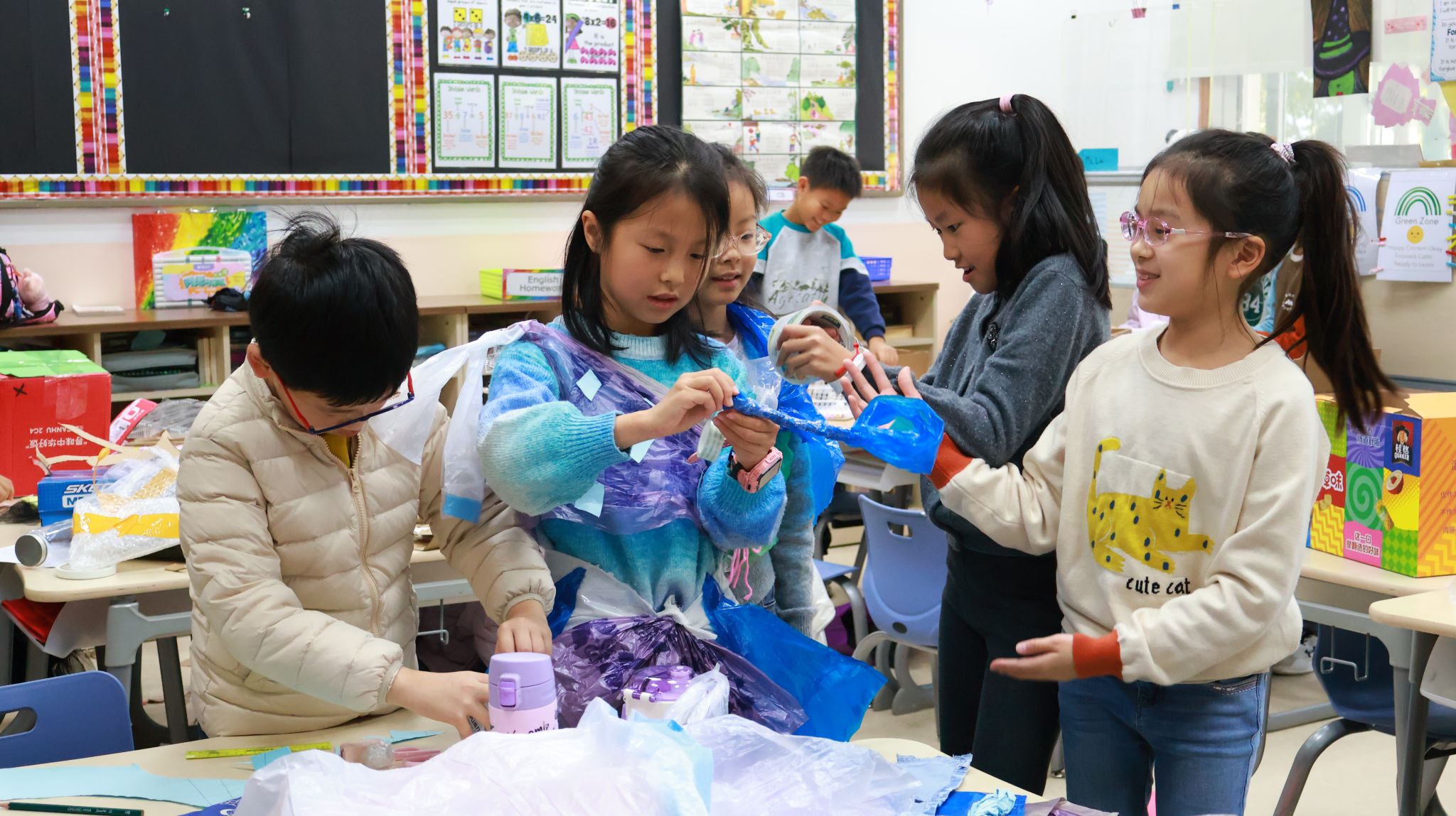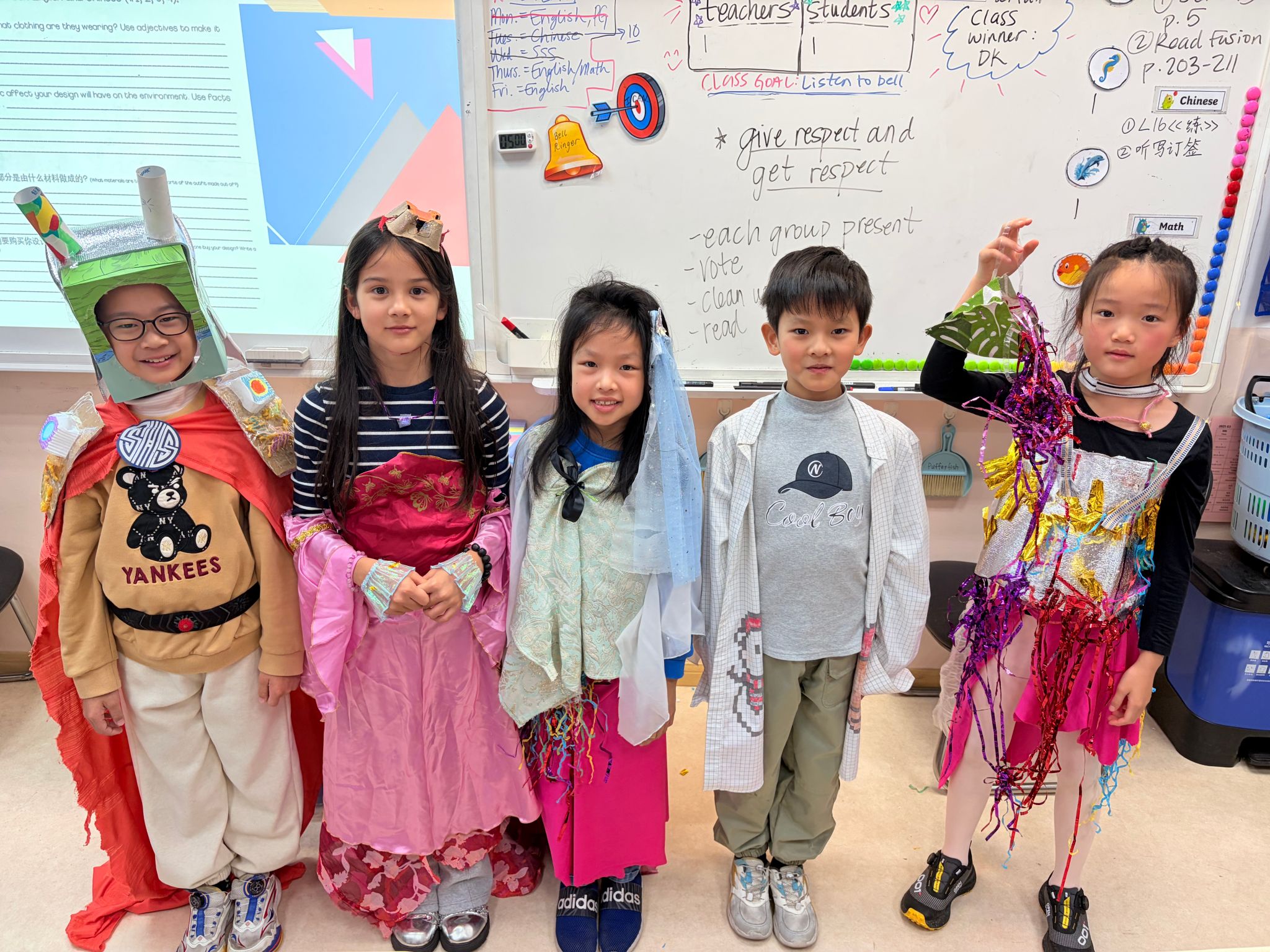 To tackle the challenge, students engaged in a cross-curricular STEAM journey connecting English, Chinese, science, social studies, and math. In math, they measured materials and planned outfit structures with accuracy and logic. Through science and social studies, they investigated the environmental impact of fast fashion and explored global solutions to textile waste. In English and Chinese, they crafted speeches explaining their design choices and practiced delivering them confidently and clearly.