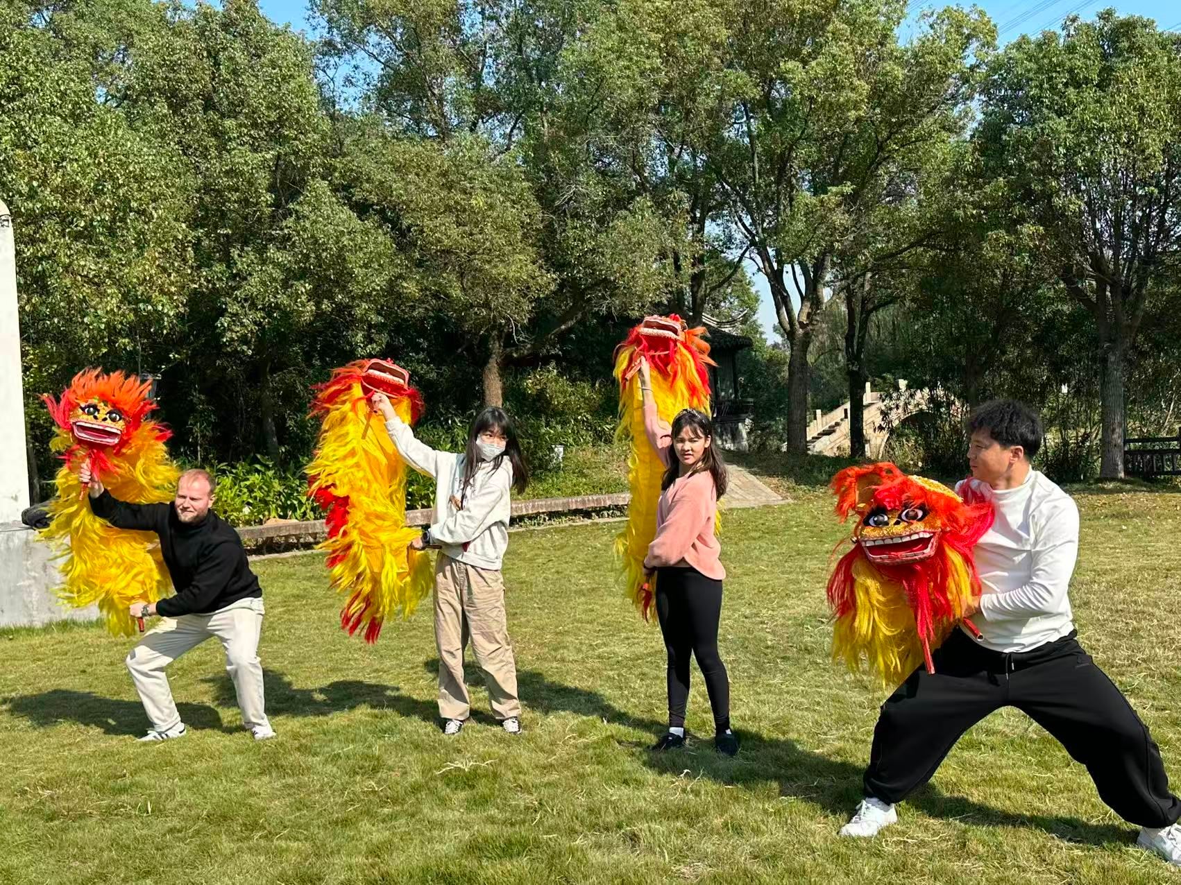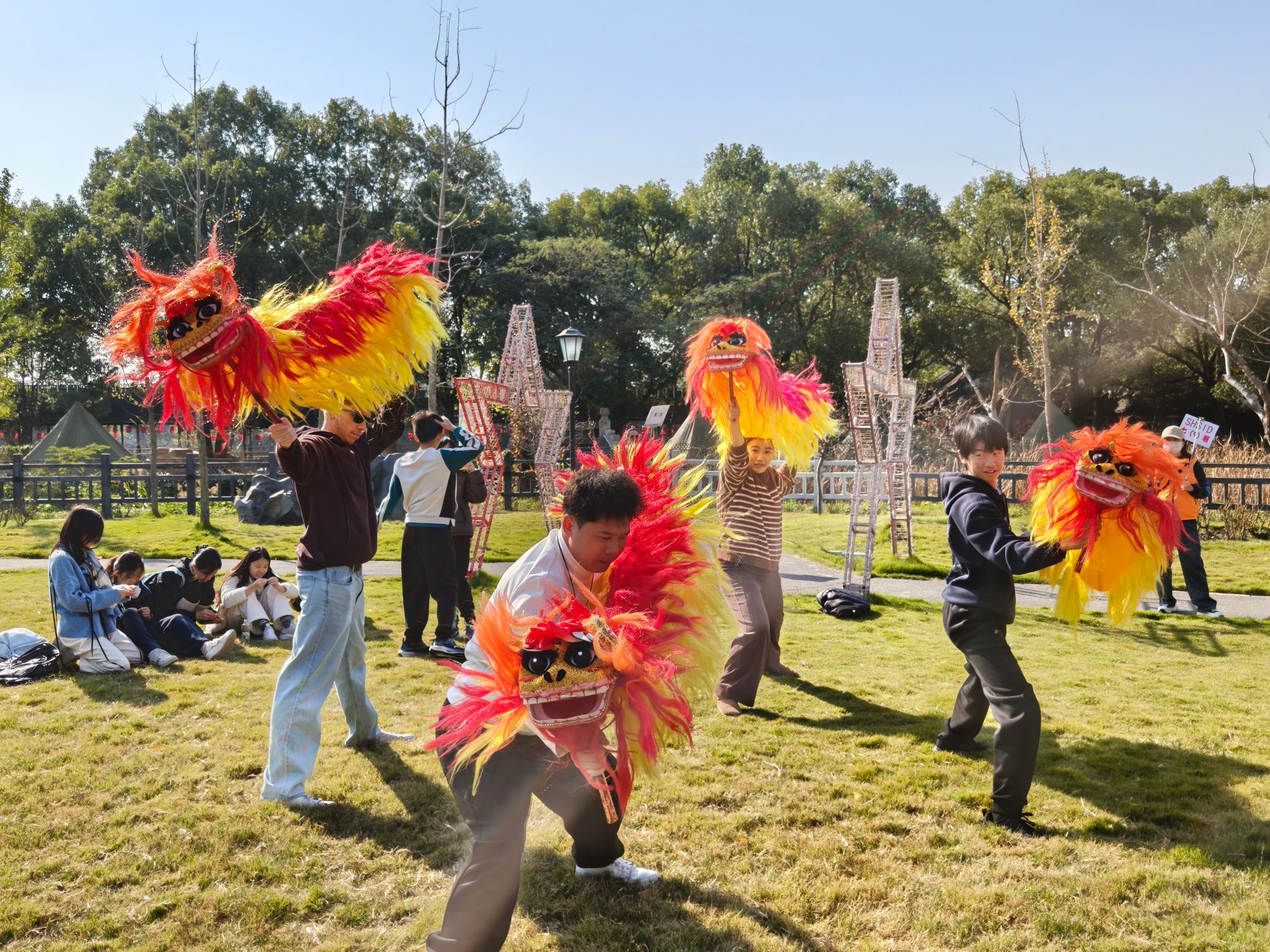 The traditional lion dance—an intangible facet of cultural heritage—quickly became another favorite. After watching a lively demonstration, students tried the movements themselves. Their early attempts were hesitant, but soon the “little lions” were leaping and tumbling across the field with growing confidence. The activity offered a playful yet meaningful introduction to a cherished folk tradition.