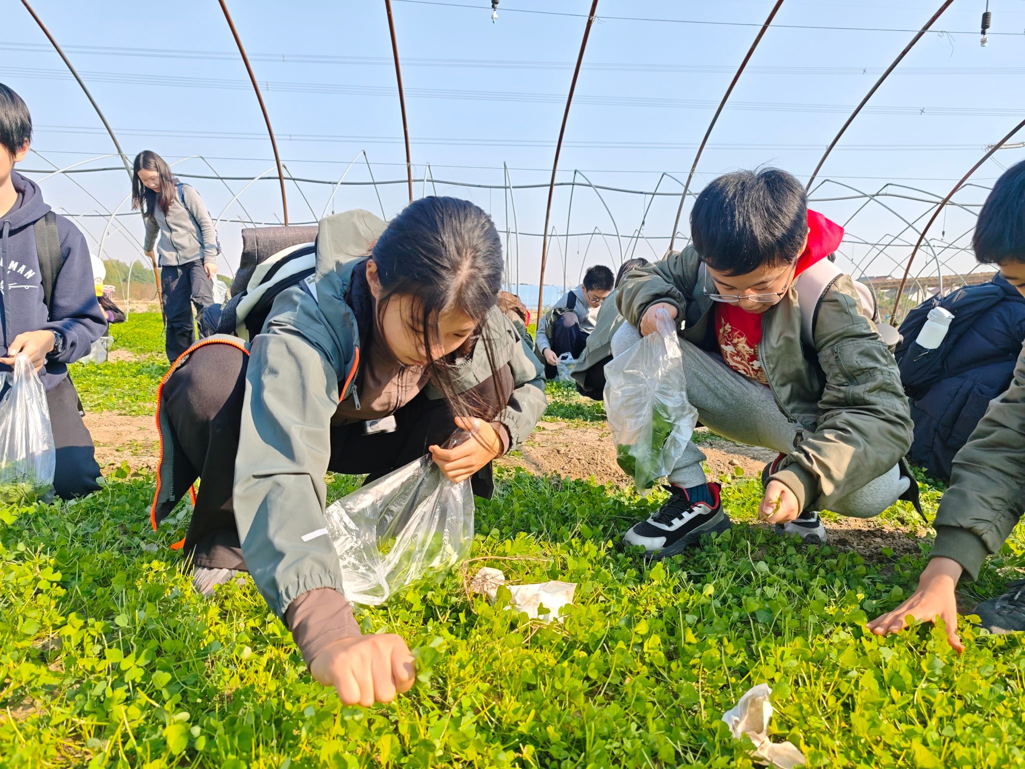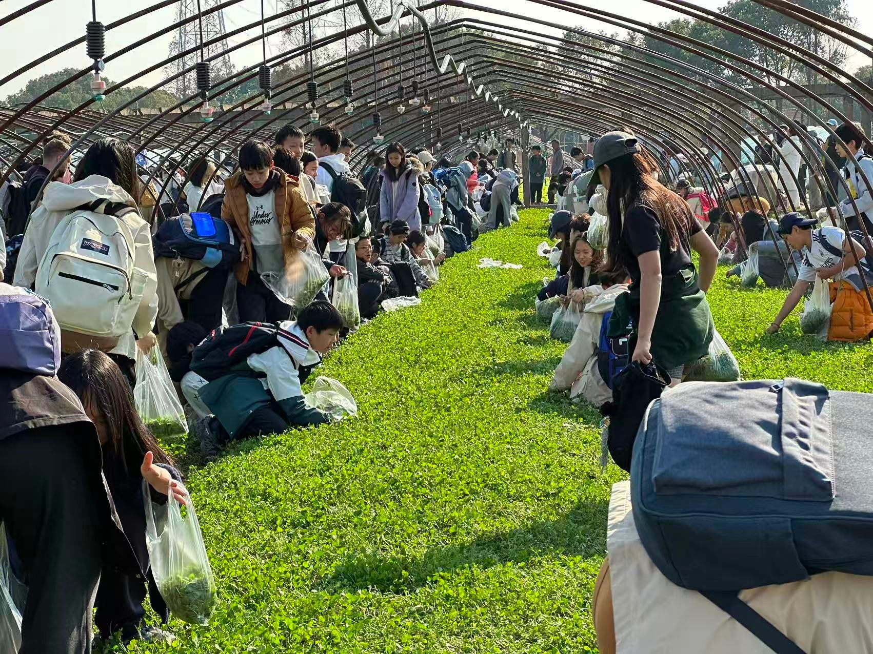 After exploring the park, the group headed to the planting field, where vegetable picking became the most down-to-earth experience of the day. Students knelt beside the beds of chives, captivated by the fresh scent of soil and the delicate texture of the leaves. With curious excitement, they gently plucked the greens one by one. As their bags grew heavier, so did their sense of delight. In that simple moment, the warmth of the earth and the joy of harvest felt especially real.