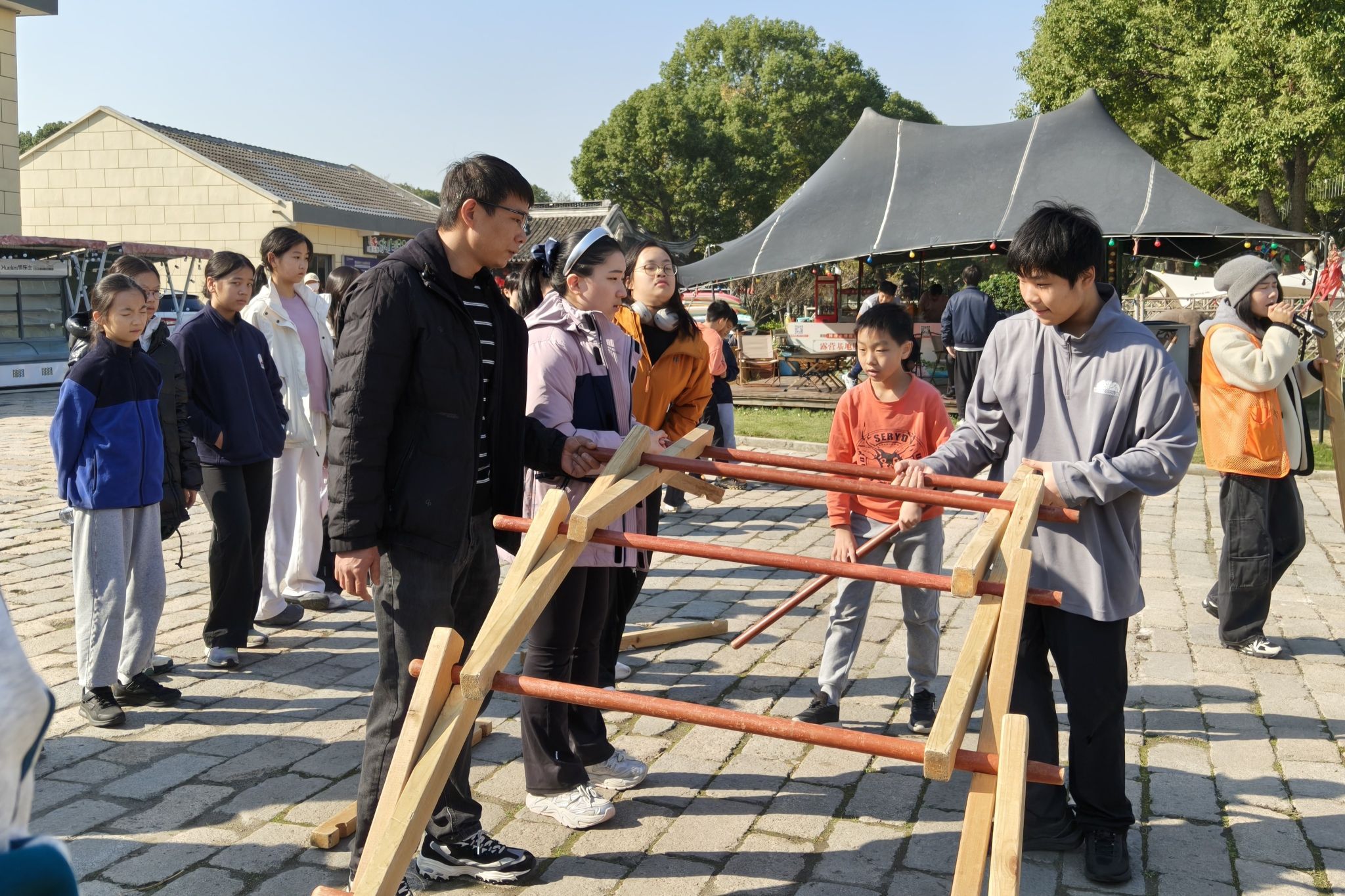 A highlight of the morning was the hands-on bridge-building workshop, where students discovered the brilliance of traditional mortise-and-tenon design. Guided by instructors, volunteers assembled a self-supporting Bailey bridge in just minutes—a structure held together purely by precise interlocking pieces. When weight is applied, the components press against one another, creating remarkable stability. Back in the classroom, students enthusiastically experimented with wooden sticks to build their own miniature versions. The activity brought ancient craftsmanship to life and sparked genuine curiosity and creativity.