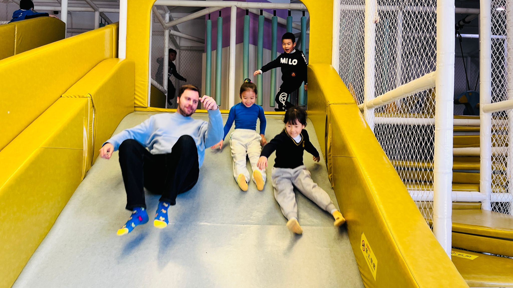The second graders stepped into the Jegoplaytoo Park— and it felt as if they had walked straight into a living, breathing storybook. In front of Bunny Castle, the giant bunny-shaped play structure became the star of the entire area. Slides curved downward, climbing nets stretched in every direction, and children ran, climbed, and glided to their hearts' content, releasing their endless energy. Waves of cheerful laughter rang throughout the park. The Racing Zone ignited even more excitement. Bumper cars collided with bursts of laughter, and pedal cars sped around the track again and again. Speed and joy raced side by side, and the children's bright smiles shone even more brilliantly under the warm autumn sun. Under the Dreamcatcher, the rainbow bouncing pillow and the giant climbing web shimmered with vibrant colors. The children leapt and darted lightly like little clouds drifting through a rainbow world, fully enjoying the pure fun of bouncing and climbing.