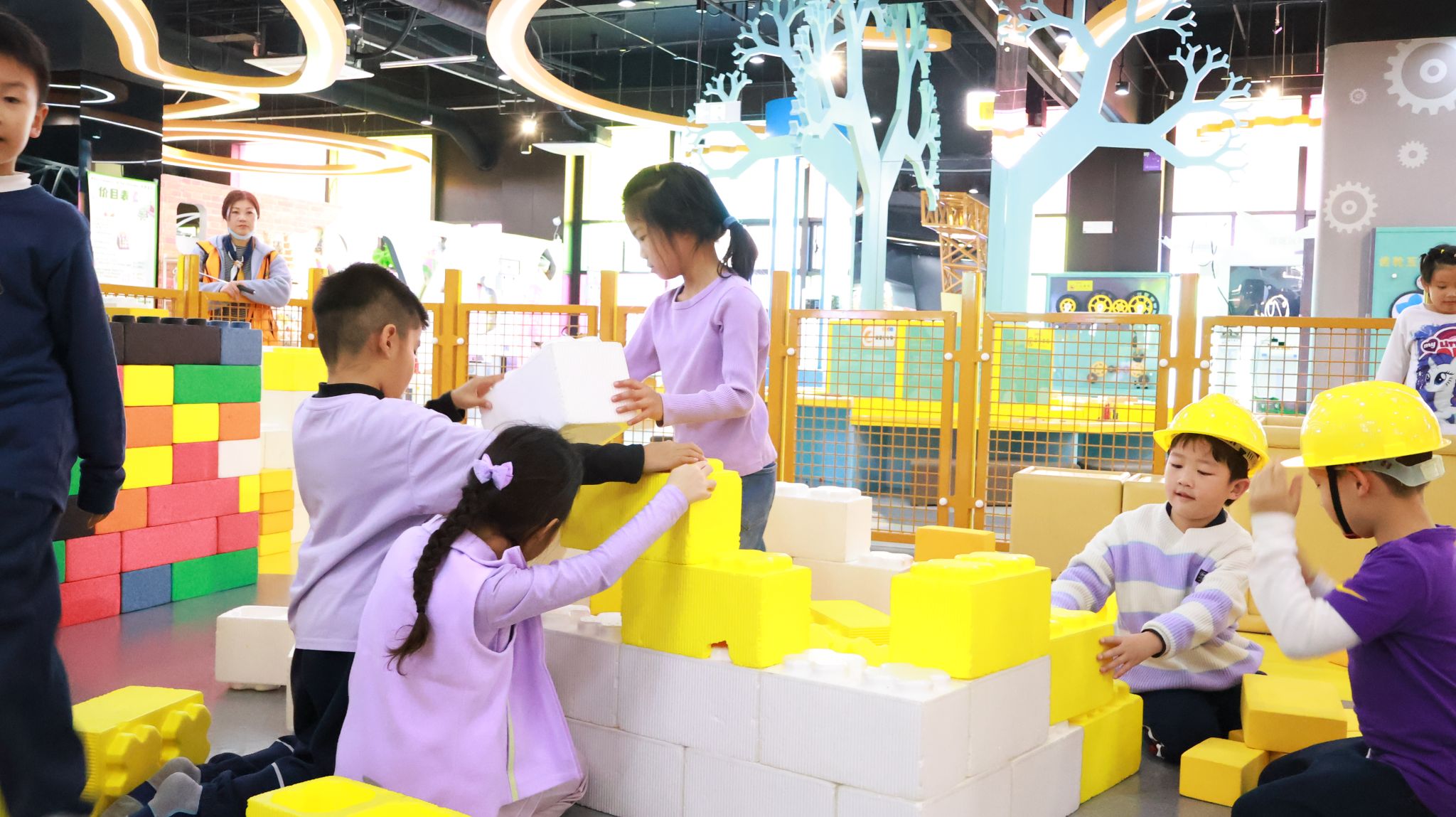 The first-grade children entered the Beijia Bao STEAM Children's Experience Center full of anticipation, embarking on a wonderful journey of exploration that integrated science, technology, engineering, art, and mathematics. The children moved through different pavilions, experiencing the wonders of science through interactive installations, and using their tiny hands to feel the warmth of knowledge while building with toy bricks and designing houses. In the planet-themed pavilion, they earnestly pondered the principles of mechanical operation and experienced the marvel of engineering and technology by operating devices themselves. In the lively play area, the children freely expressed their carefree nature, embracing innocent friendships and the warmth of group activities through running and playing.
