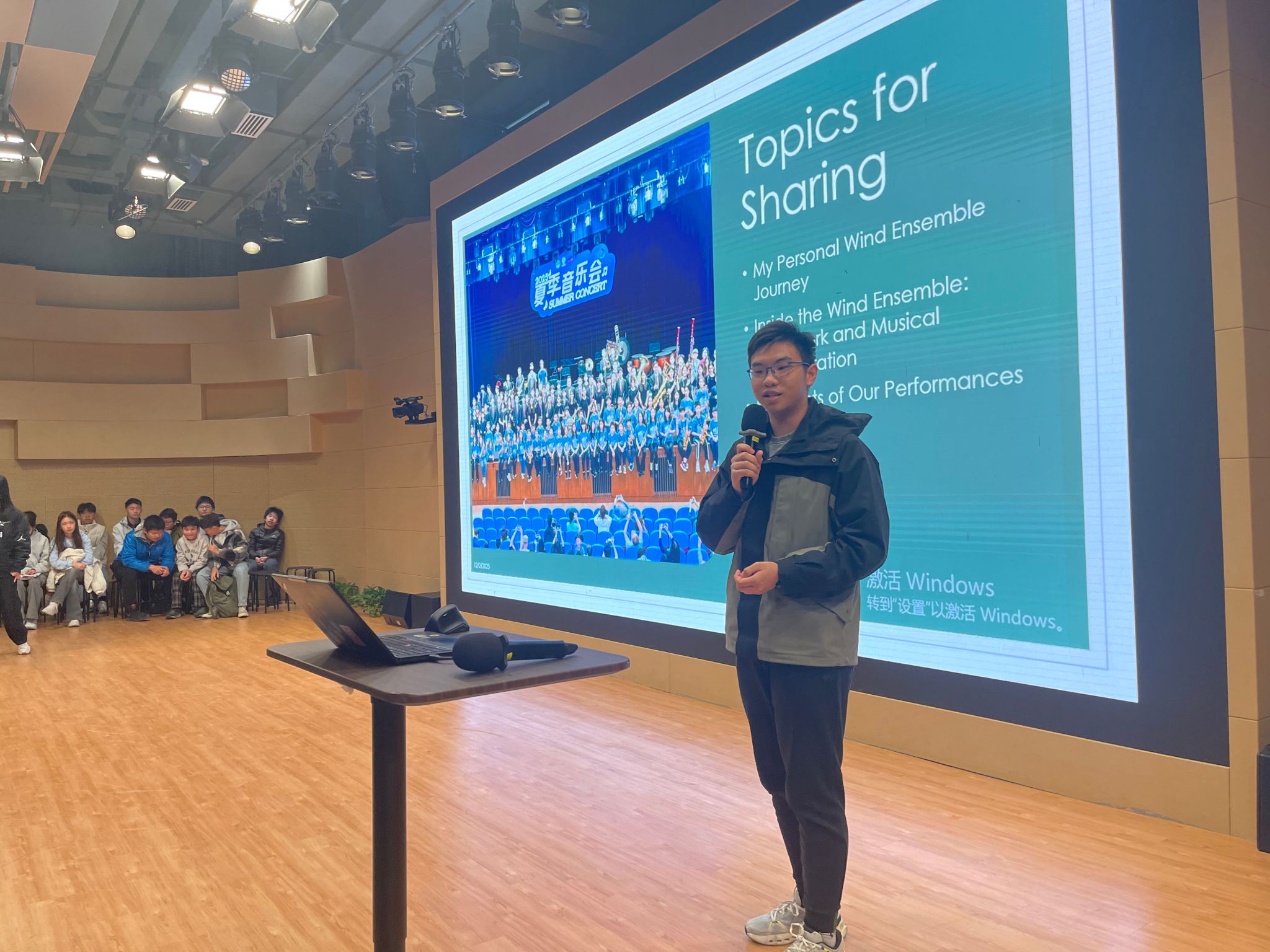 On December 2nd, during the weekly Grade 9 Assembly, Daniel from 9(6) offered a clear and personal reflection on his four years with the SHS Wind Ensemble—from joining as a novice in Grade 5 to rising as saxophone section leader by Grade 9. His musical journey began in Grade 2, when he first picked up the saxophone, drawn by its distinctive look and sound. Alongside saxophone, Daniel also studied piano, a pursuit that helped him build a broader musical foundation.