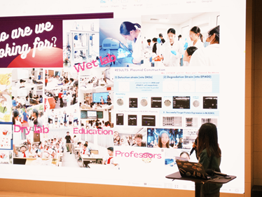 Next, the school's iGEM competition team introduced the contest to the students. They talked about the interesting stories, gains, and post-competition reflections from their participation. Finally, they recommended everyone to take part in the iGEM competition to enhance their scientific research and inquiry thinking abilities.