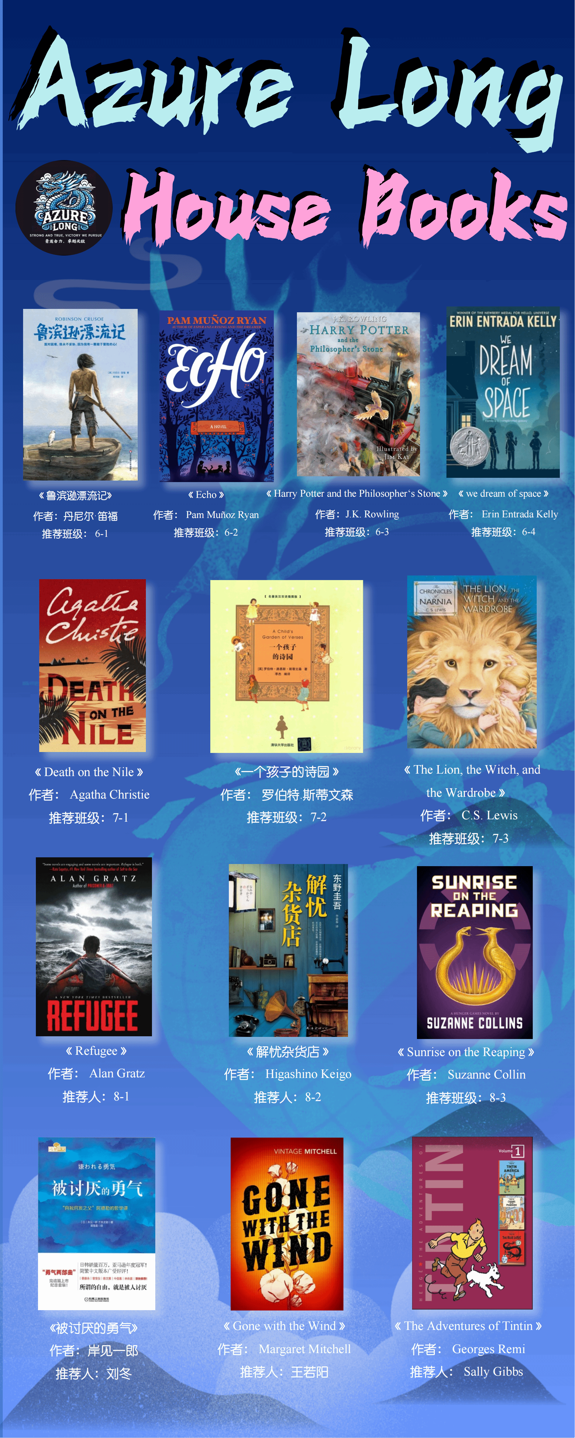 At the start of the new term, teachers and students from Azure Long House, White Tiger House, and Vermilion Phoenix House each recommended a book they believed meaningful for middle school readers. These selections—ranging from fantasy and contemporary reflections to history and science—formed the annual House Recommended Reading List. Once the posters were displayed, students could often be seen gathering around them during breaks, browsing titles and exchanging impressions. The September reading list became a doorway into new literary landscapes, officially launching the reading journey for the semester.