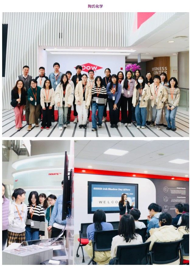 “This year’s job shadow day we went to the Dow chemical company and got the chance to explore their building and understand how chemistry connects to their work. We first listened to some lectures about sustainability, artificial intelligence digital projects, and some products made of organosilicon. We had the chance to have a real touch on silicon and how quartz sand is turned into silicone: sand to charcoal to Metal Silicon with Oxide and eventually made into Organosilicon. Afterwards, we explored their building and something super interesting is the race car they had which parts were made from the products of Dow chemical company. This job shadow day is a very good experience for us to have a deeper knowledge on chemistry and how it affects our life.”——9-3 Katie