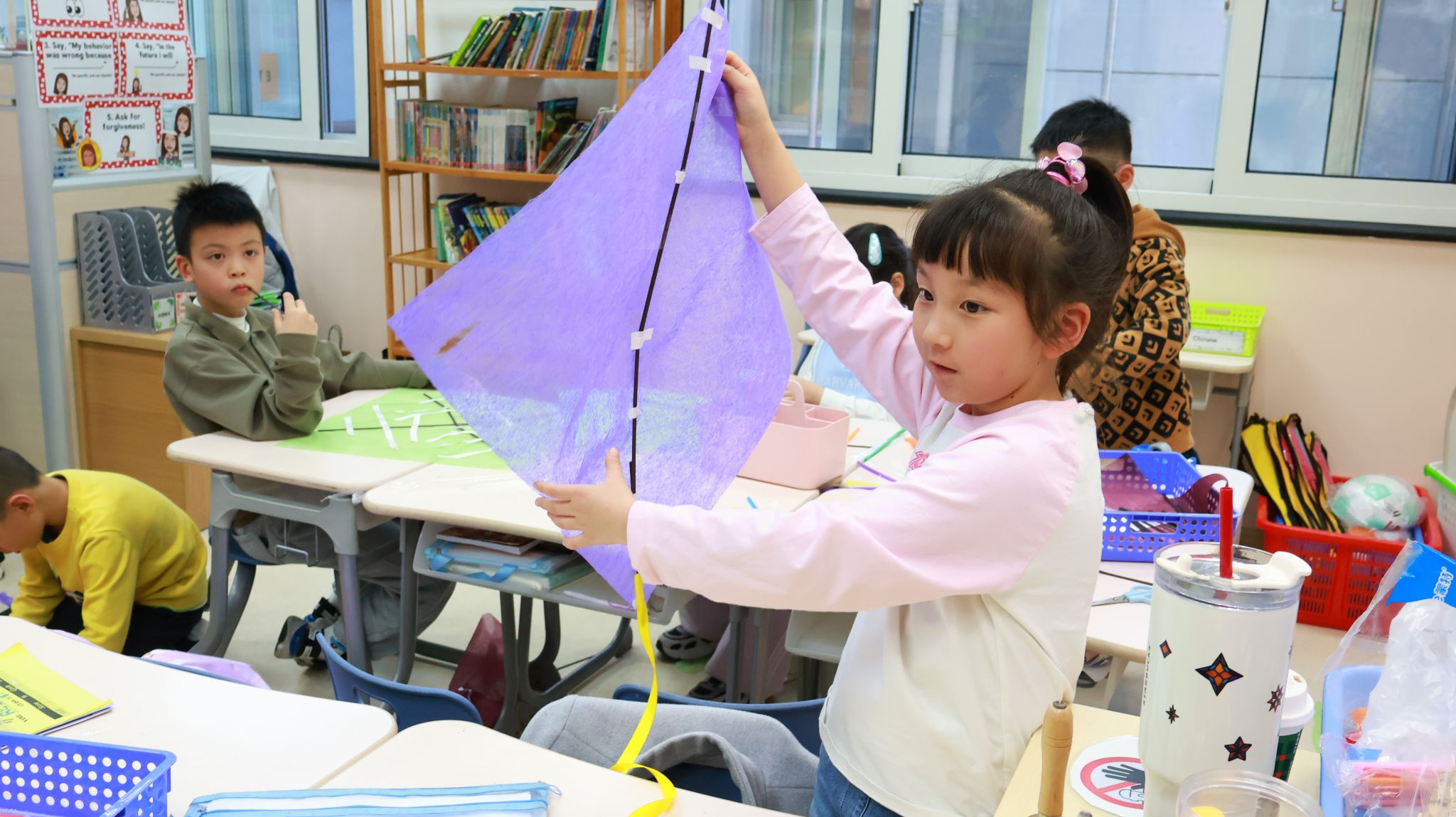 In math class, the children examined the geometry of their kite designs, identifying shapes, angles, and vertices. They also measured the perimeter of their kites, helping them understand how size and proportion can influence a kite’s performance. Not only that, the teacher also introduced the cultural origins of kites. Kites were first invented in China and were originally called “zhiyuan” (paper bird). In ancient times, they were mainly used for practical purposes such as military reconnaissance. Over time, they gradually became part of folk life and evolved into cultural symbols in traditional festivals—especially during Qingming—carrying emotions, memories, and well-wishes. The classic shapes of traditional kites are also closely connected to Chinese aesthetics and mathematical wisdom. This cultural context and the mathematical exploration provided a strong theoretical foundation for the students’ second round of kite redesign.