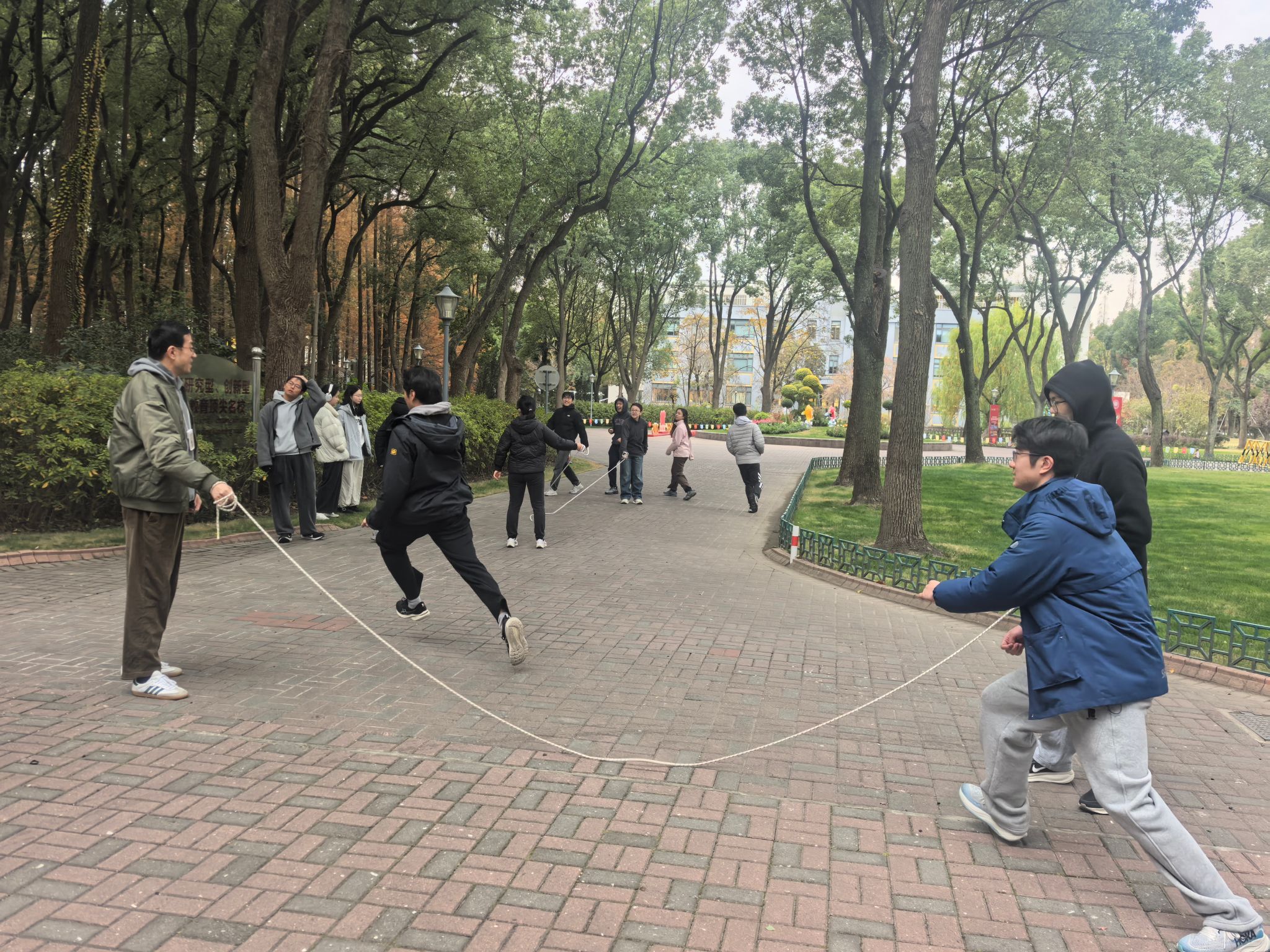Twelfth-grade students are currently in the critical final phase of the college application season. To help them relax, teachers organized a warm and practical activity — group rope skipping during the morning P&B periods on December 10th and 11th.