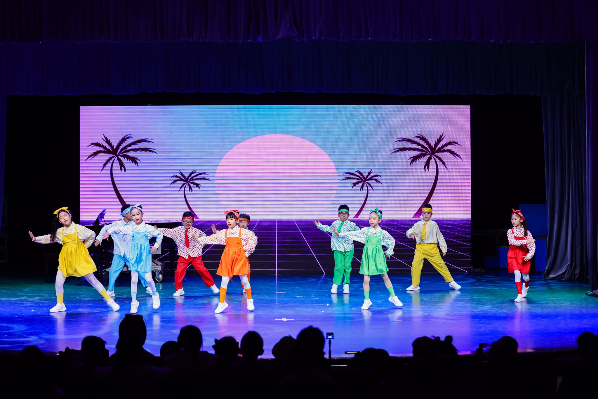 Class 1-2 and Class 2-2 delighted the audience with playful dances BANANA CHACHA and True Love, radiating pure joy and innocence. The VIV group from Class 3-2 presented We Are Different, But We Are Together, a creative performance blending Huangmei opera, Latin dance, choral singing, and rhythmic gymnastics. Through this multicultural collaboration, the students beautifully illustrated themes of inclusion and unity, demonstrating art’s power to transcend cultural boundaries and connect hearts.