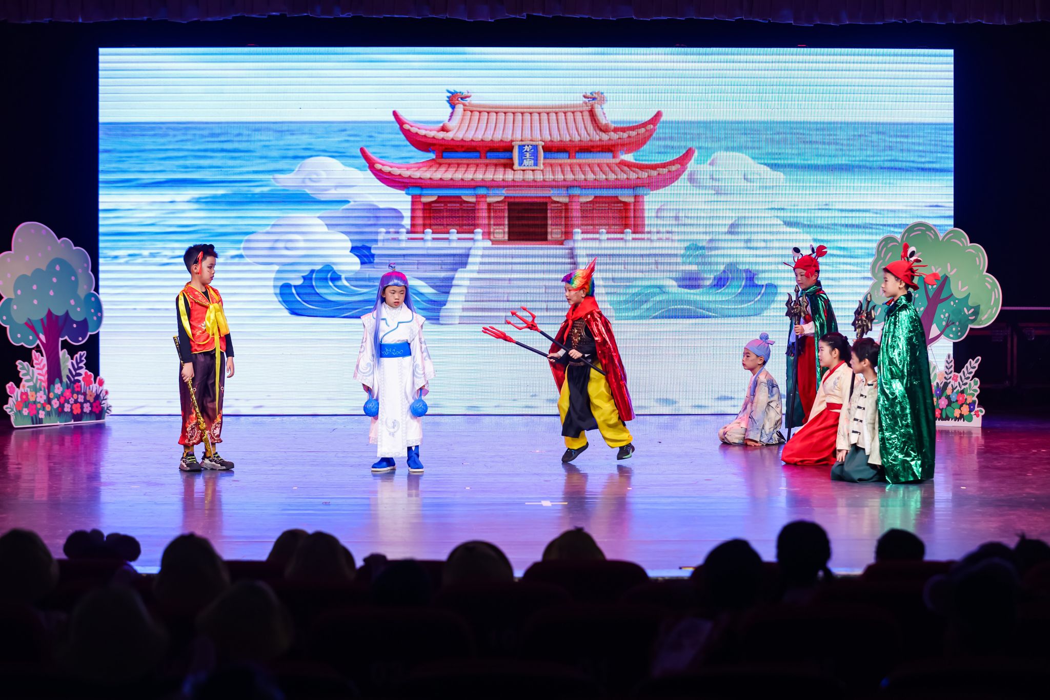 Class 3-1’s choir performance of Big Fish captivated the audience with ethereal vocals, showcasing the timeless elegance of Chinese-style music. Justin and Ian Du from Class 3-2 delivered a humorous and rhythmic cross-talk performance Fresh Talk to the Beat, earning laughter and applause while highlighting the charm of traditional oral arts. Ten students from Class 2-2 presented the play The Ice and Fire Pact of Chentang Pass, reimagining the legend of Nezha with compelling stage presence that held the audience spellbound.