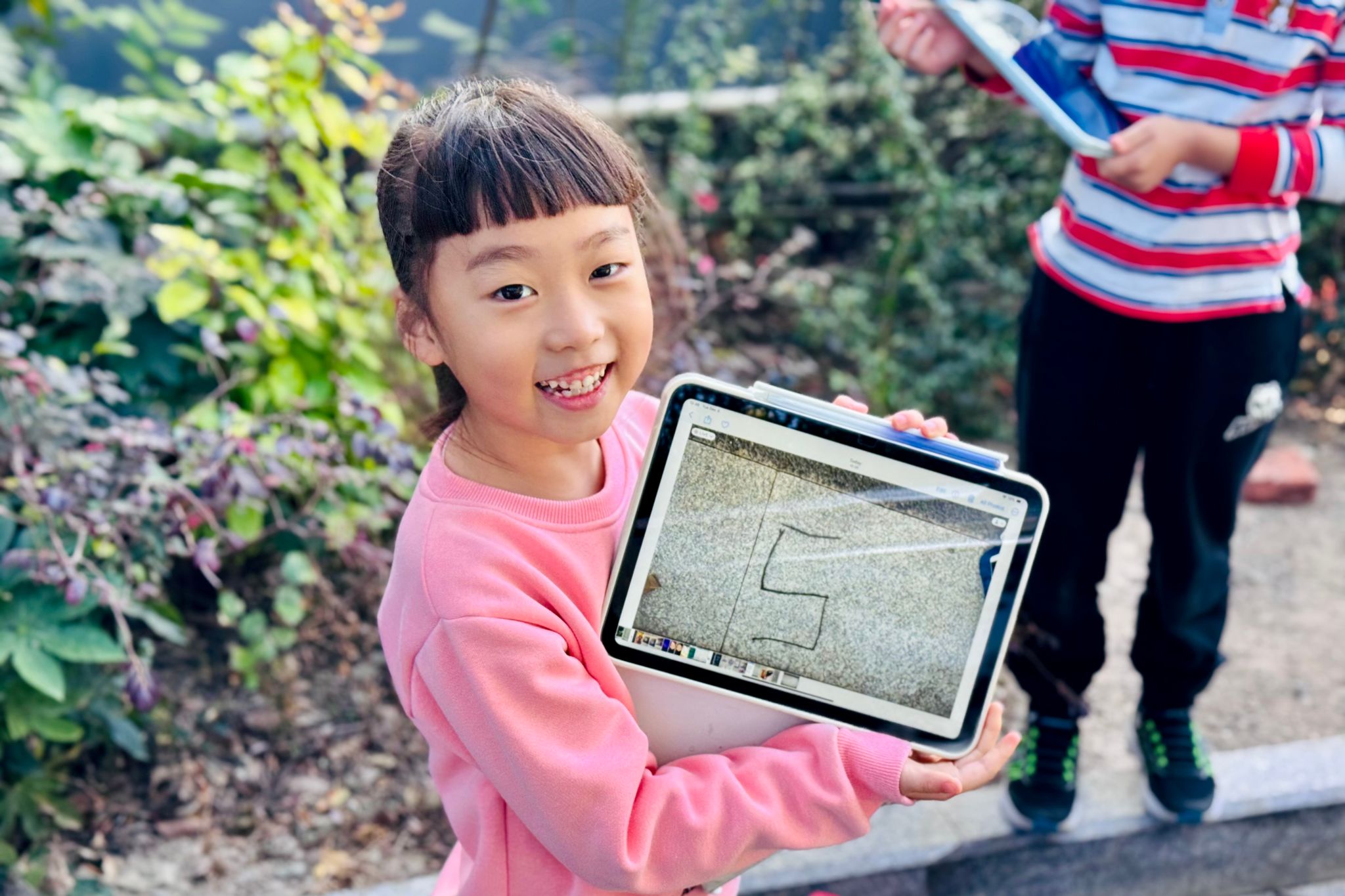 On Tuesday and Wednesday, the activities entered a deep creative phase. The students began brainstorming their own unique math riddles. Some chose to weave clever clues for specific numbers, while others created vivid descriptions for the 2D shapes they had recently learned. Furthermore, the children stepped out of the classroom and into the beautiful campus to collect natural materials like fallen leaves, flower petals, and twigs. They used these to manually assemble the shapes of their riddle answers, took photos, printed them, and attached them to the back of their self-created riddles. This segment masterfully integrated mathematical learning, nature exploration, and artistic creation, bringing abstract mathematical concepts vividly to life.