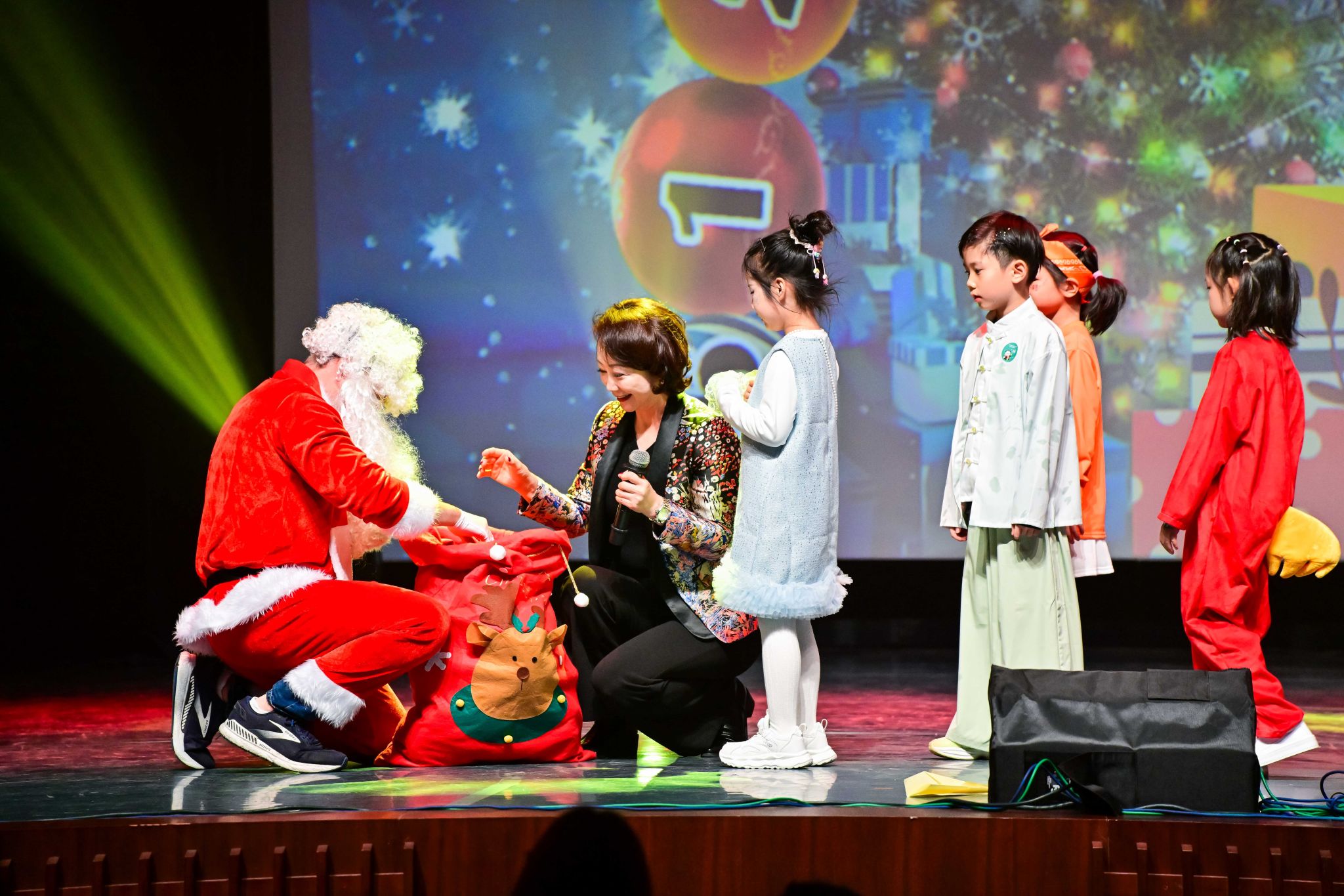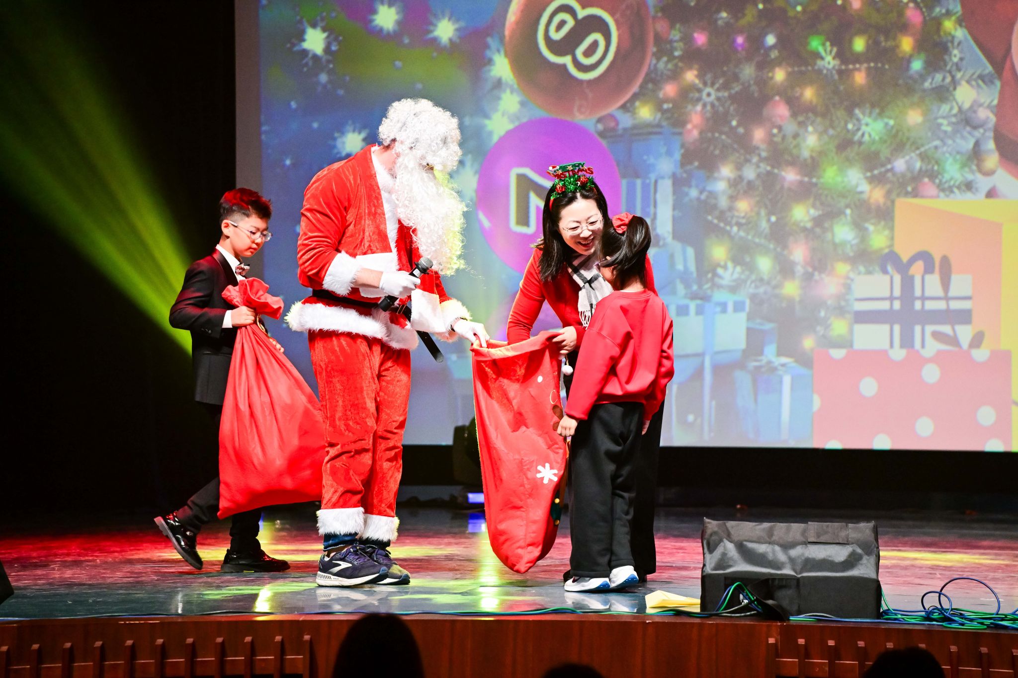 Afterwards, Ms. Liu Lian, Principal of SHSID Middle and Primary School, Ms. Miao Xiaoling, Assistant Principal of SHSID Middle and Primary School, and Ms. Zhang Yi, Director of SHSID Puxi Campus Grade 1-3, drew lucky prizes for each grade and presented carefully prepared Christmas gifts to the winners. Applause and laughter filled the auditorium, pushing the festive atmosphere to its peak.