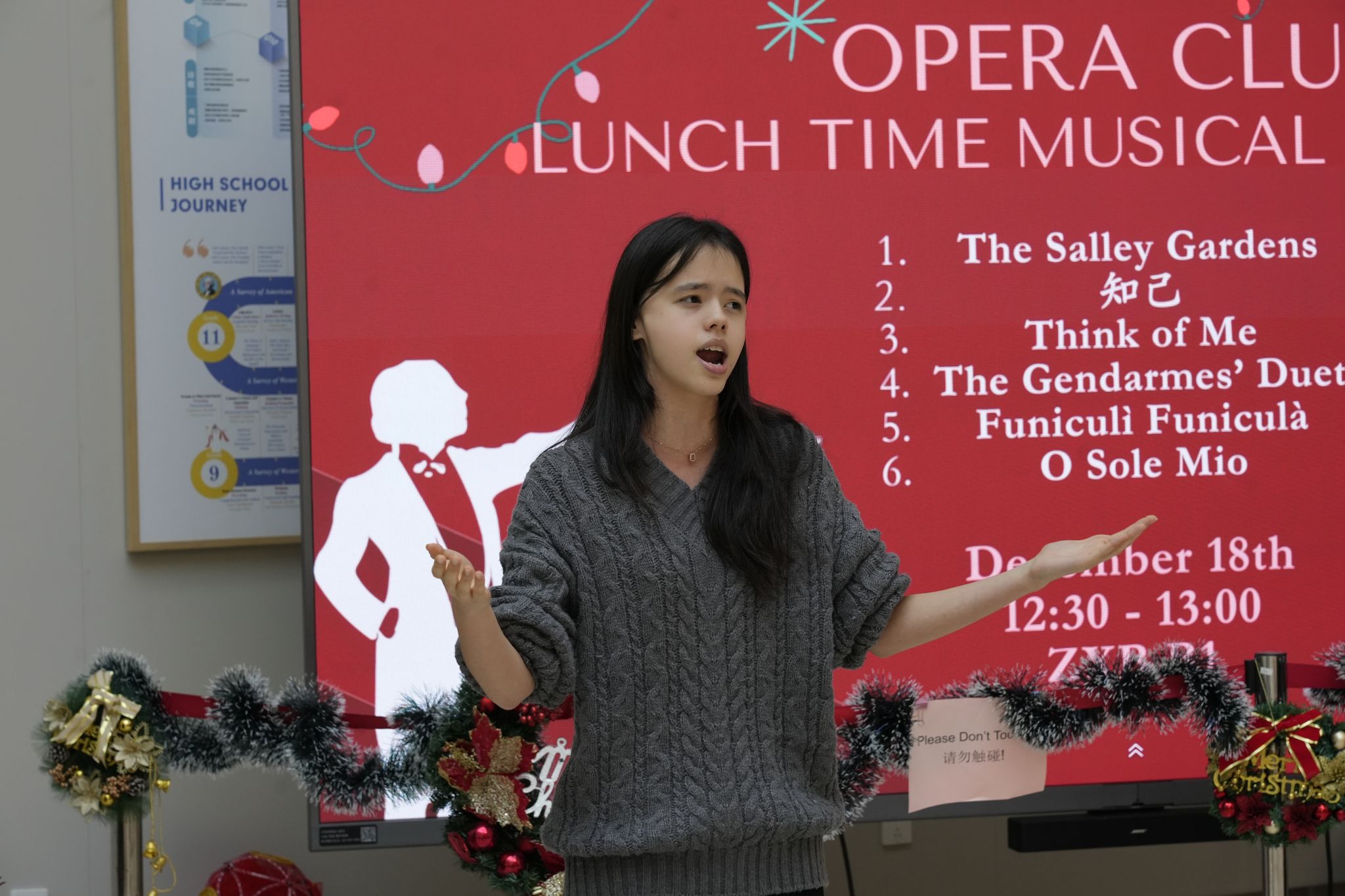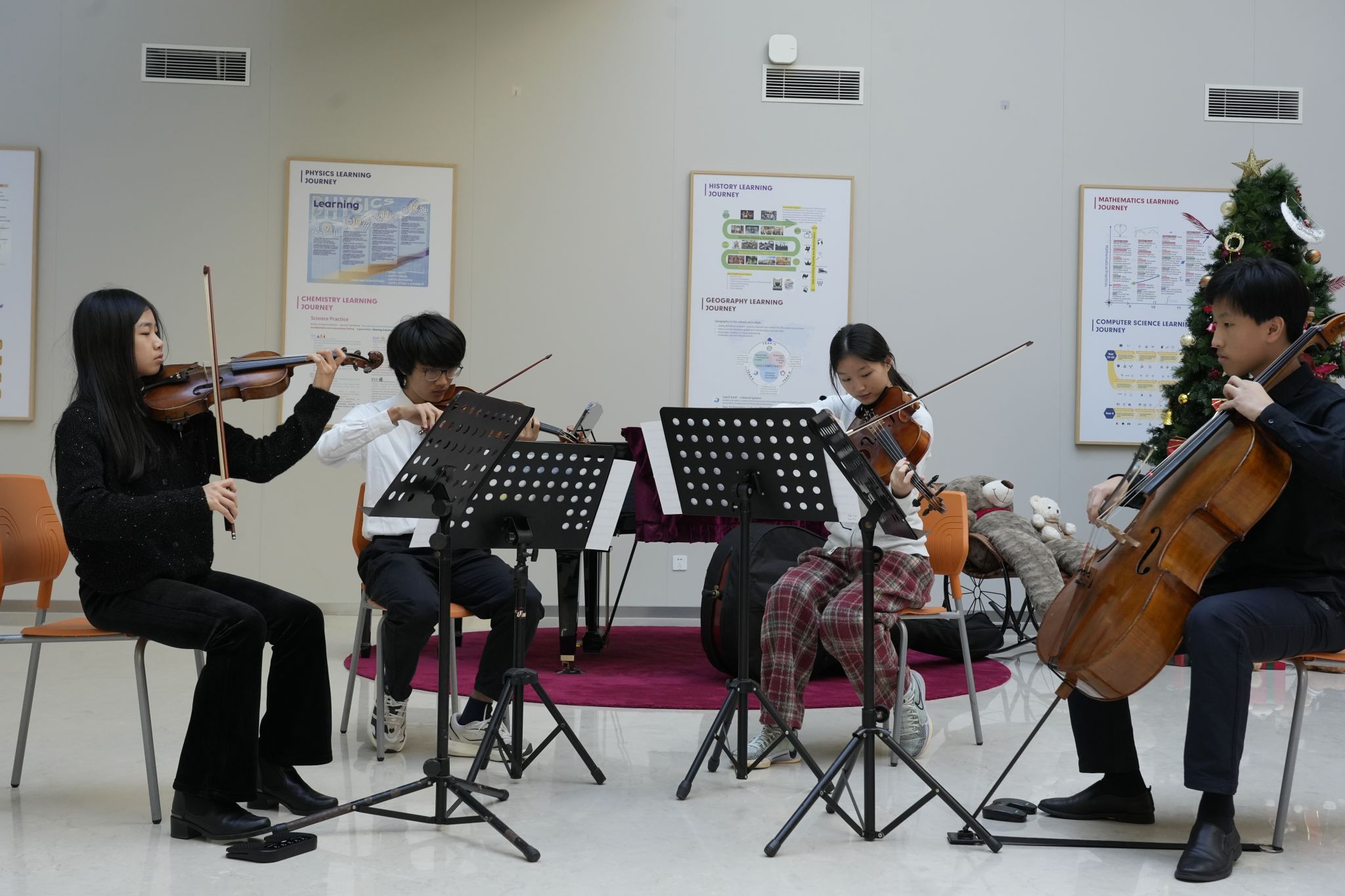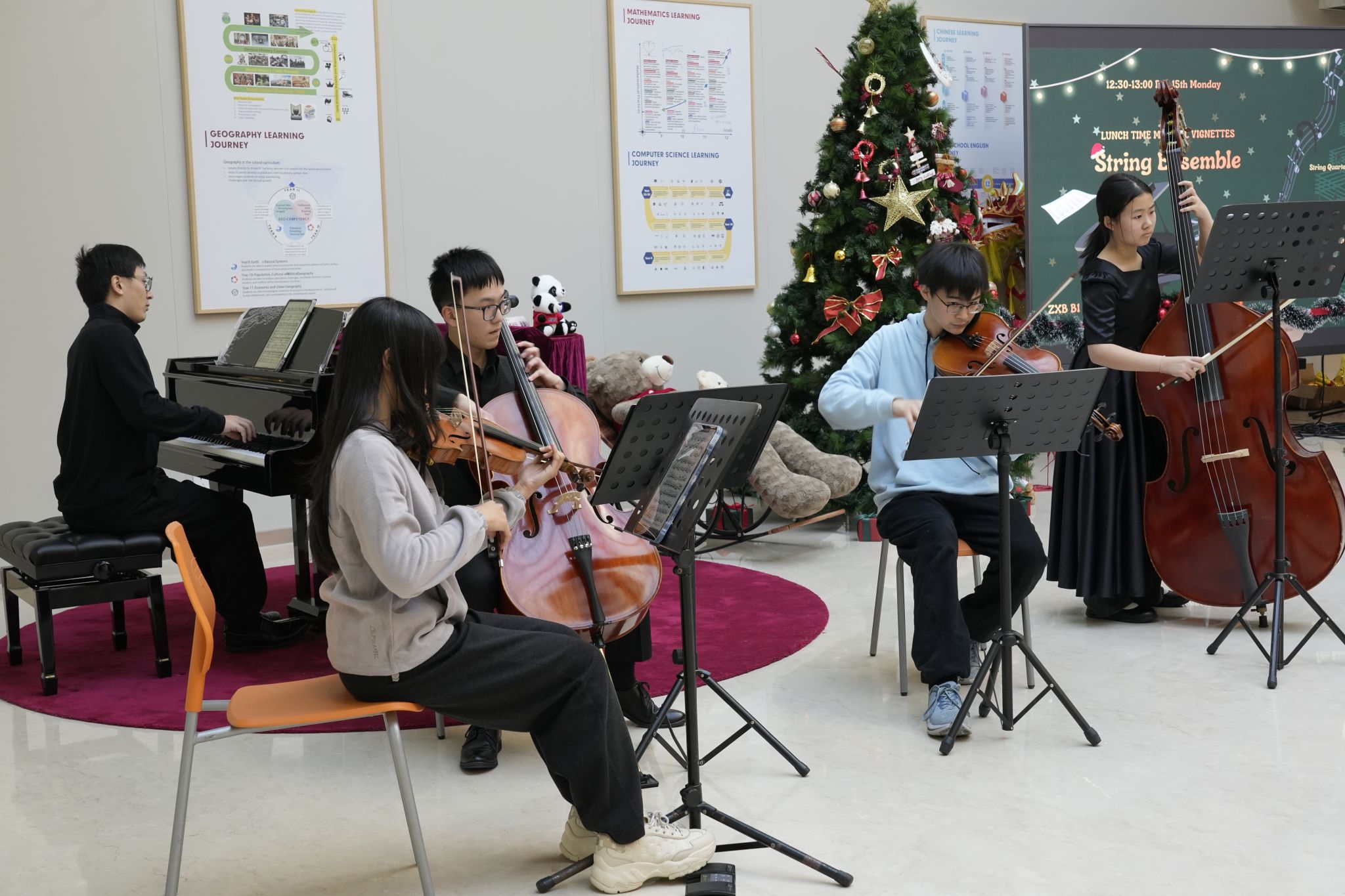 As the year ends and winter deepens, a warm, festive atmosphere began blooming. To welcome the New Year, the high school transformed the B1 Hall of Zhongxing Building into a cozy stage for its "Warm Winter Welcome" Lunchtime Music Vignettes in late December. The event featured a diverse program of string ensembles, piano solos, and vocal performances, spanning across styles and genres from Classical to Romantic to Modern Jazz.