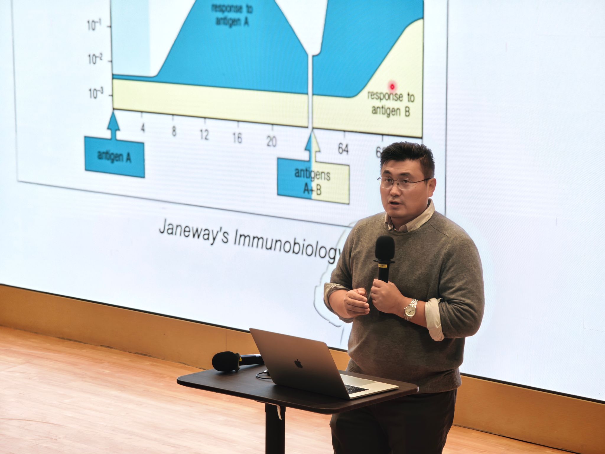 Over the course of nearly forty minutes, Professor Meng guided the audience through the remarkable journey of antibody therapeutics—from foundational immunology to clinical translation. He not only unpacked how antibodies evolved from a basic biological concept into a “star molecule” driving a global biopharmaceutical market valued at trillions of U.S. dollars, but also used vivid diagrams and real-world examples—such as “Mechanisms of Antibody Function,” “Basic Structure of Immunoglobulins,” and “Diverse Biochemical Forms of Antibodies”—to demystify complex scientific principles. Notably, when images of sharks and lampreys appeared on screen, Professor Meng skillfully connected them to the evolutionary history of antibody molecules, allowing students to marvel at the wonders of life science while appreciating the interdisciplinary nature of modern research.