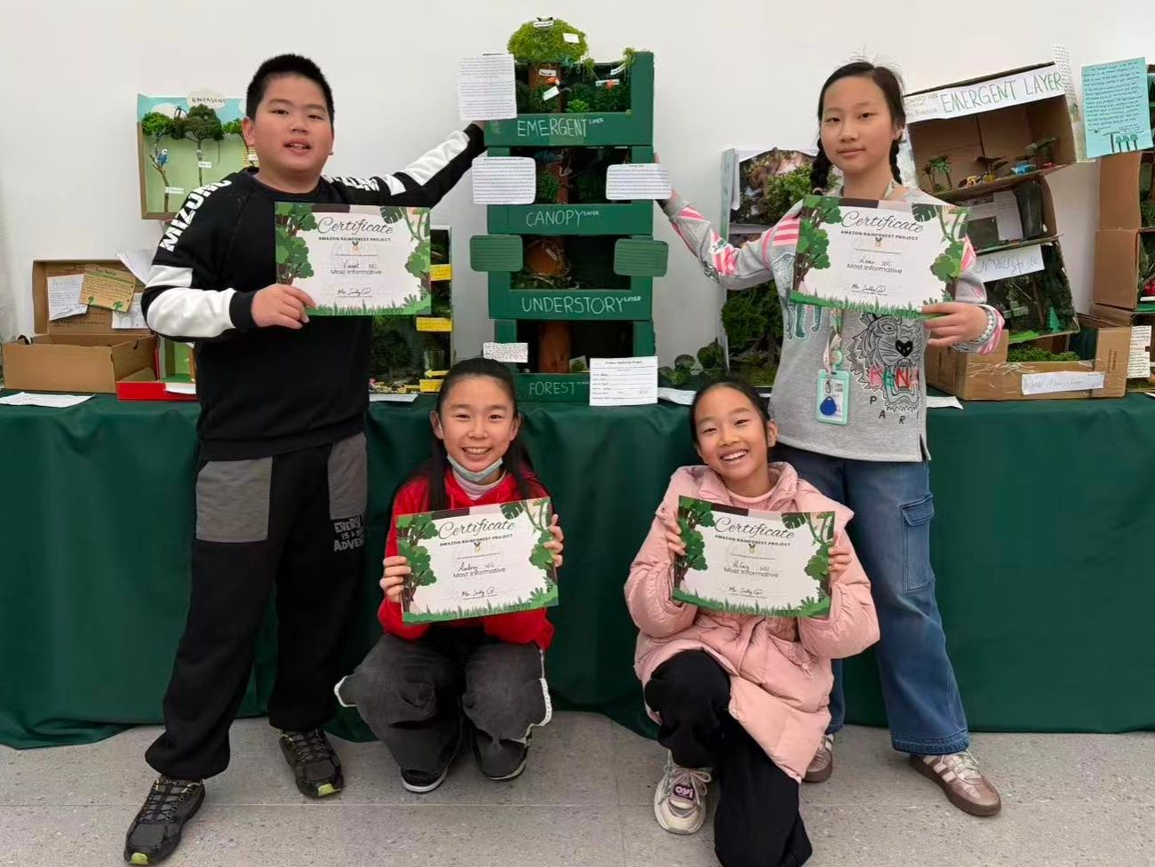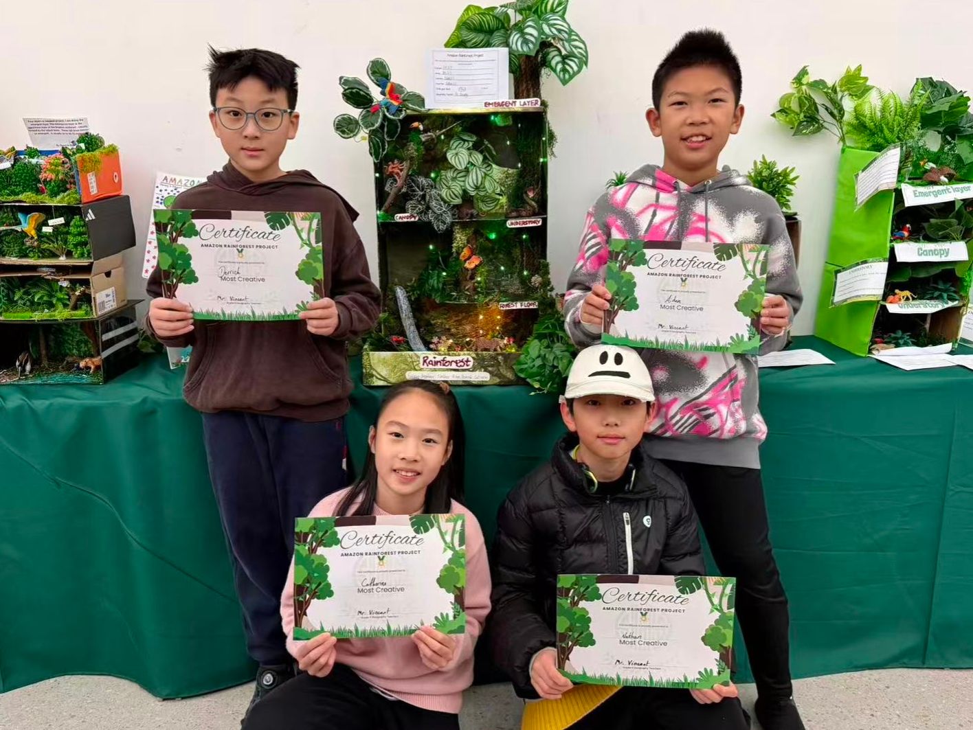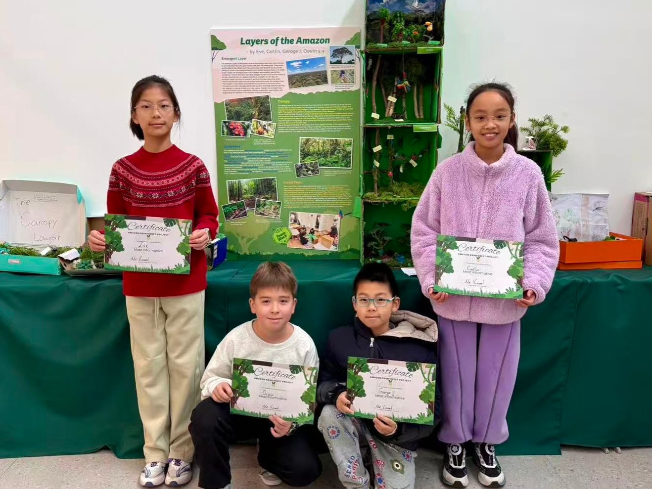 In small groups, students transformed their research into creative, detailed models or posters illustrating all four layers of the Amazon Rainforest. These projects highlighted accurate labelling, key facts, and examples of plants and animals, showcasing teamwork, problem-solving, and design thinking.