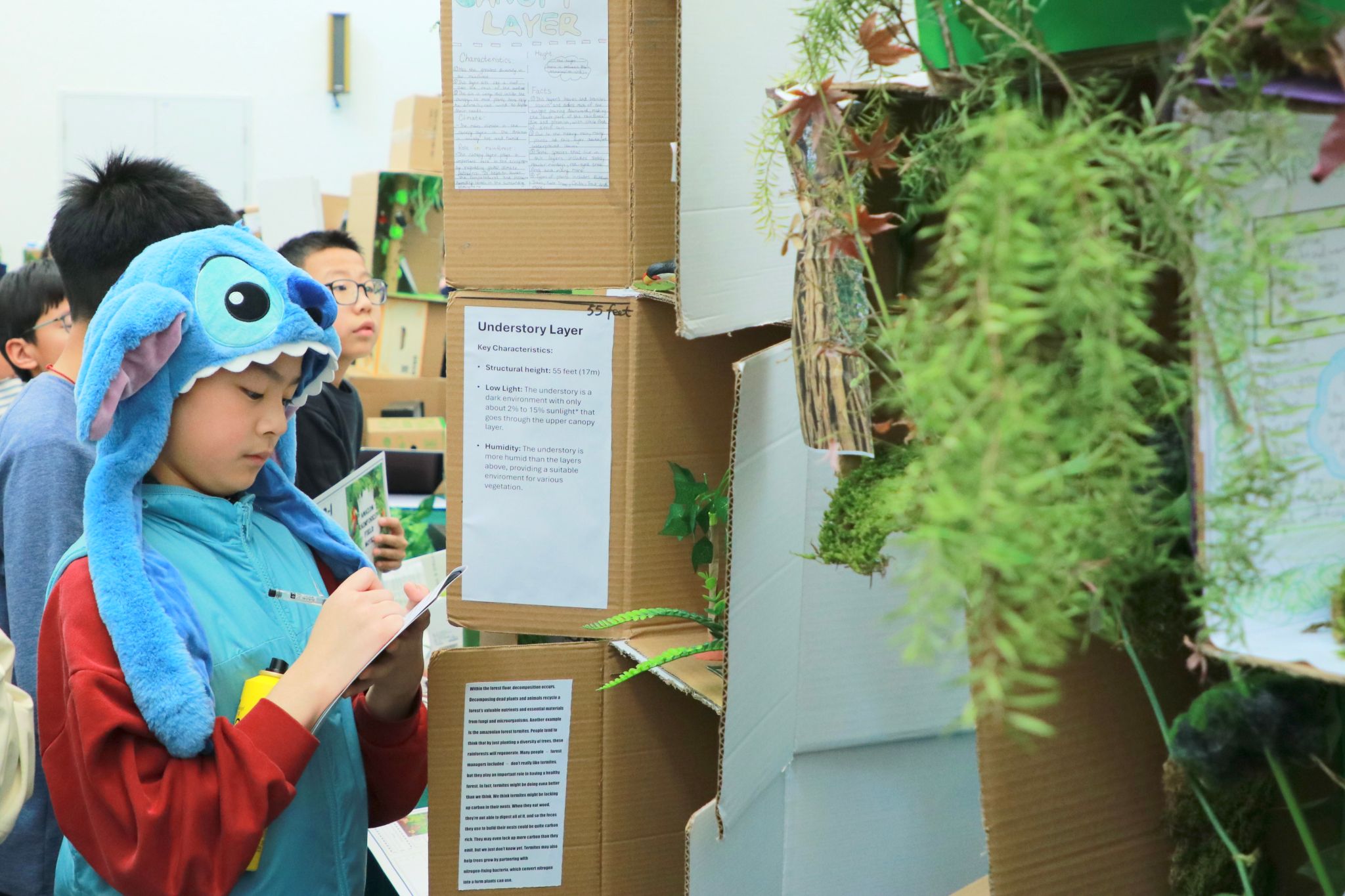 The learning experience concluded with an immersive Amazon Rainforest Gallery Walk on 31 December. Students proudly displayed their work and participated in a structured walkthrough, viewing classmates’ projects, reviewing research, and learning about rainforest layers beyond their own focus. Using field-note reflections, students recorded new knowledge, interesting facts, and thoughtful questions, turning the gallery into a shared learning space rather than a simple exhibition.