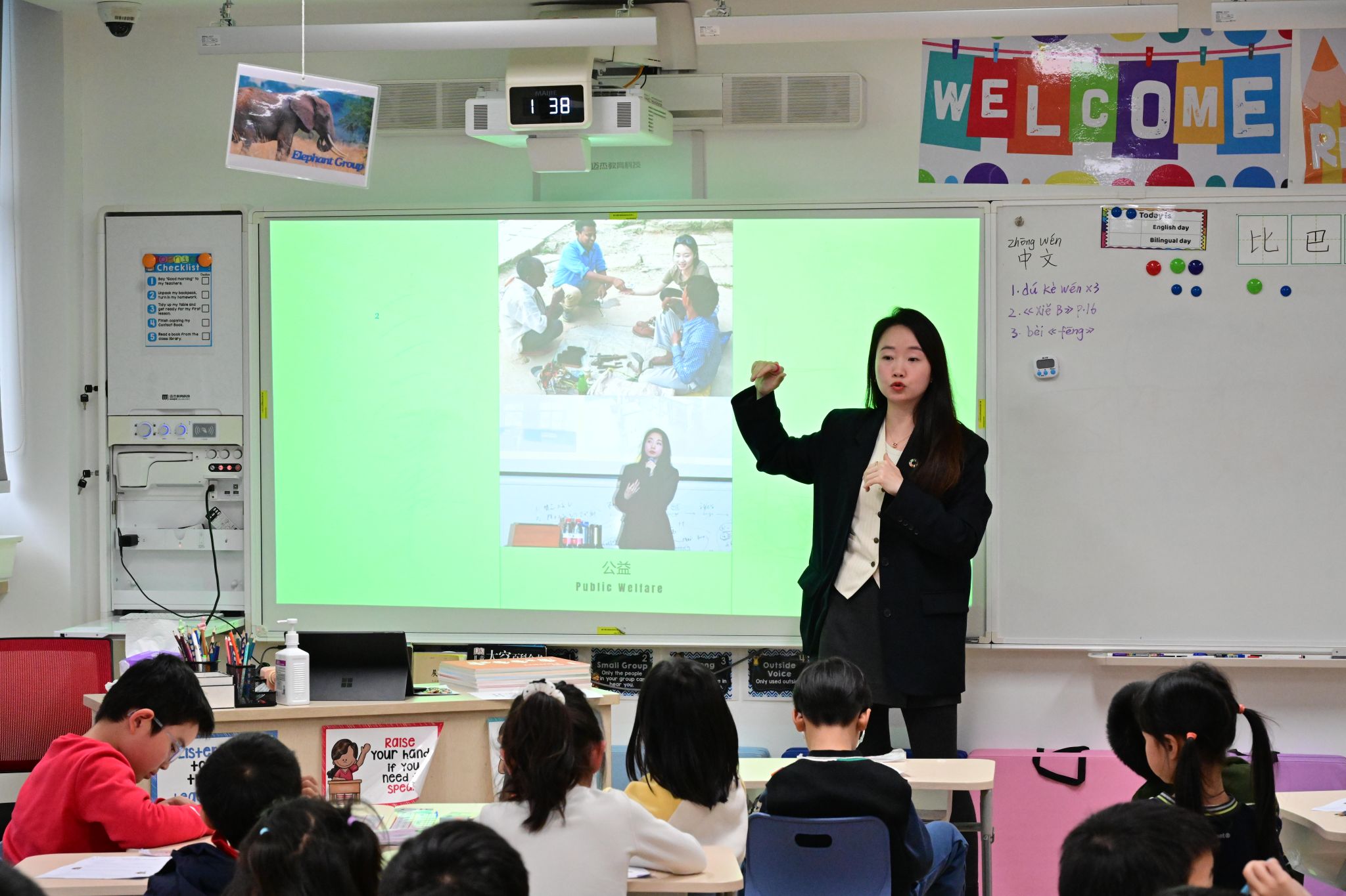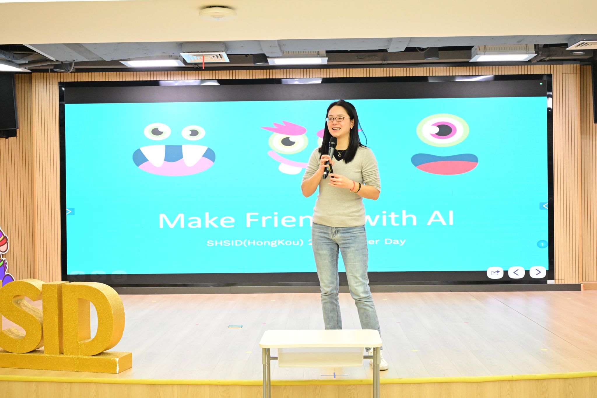 Next, Ian Zeng's mom from Class 3-2 presented an interactive and imaginative session on AI. She explained how artificial intelligence can see, hear, converse, understand, and learn like humans. Through an interactive game, students experienced how AI can recognize objects like envelopes, shoes, and tables, and learned how AI can turn favorite pictures into animations. The most exciting part was watching a robot imitate children's movements and engaging in a lively conversation with the children. This session showed the warmth of technology and left students feeling that AI is not just a tool, but a creative partner that understands and supports human ideas.