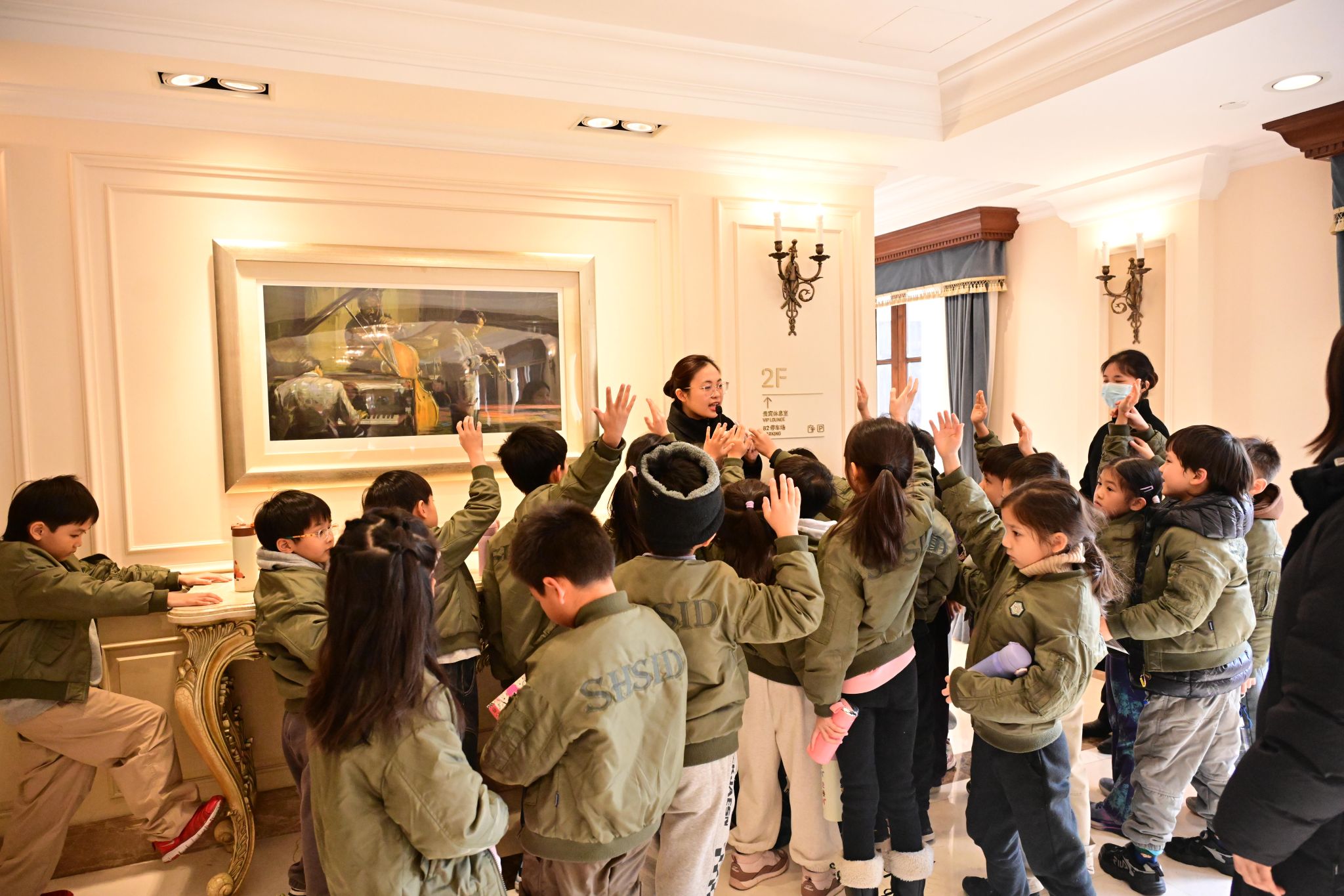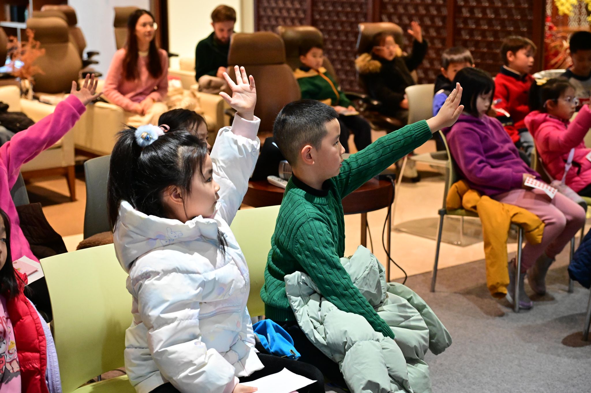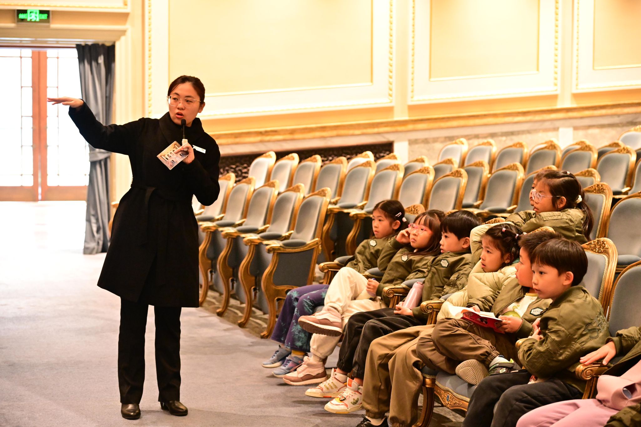 The visit began with a guide sharing the concert hall's rich history, immersing the children in its cultural heritage. In the main auditorium, they learned the "odd-left, even-right" seating rule, picked up tips for finding seats quickly, and discovered how sound reflectors enhance acoustics. The elegant "Sea Blue" seats and carpets left a lasting impression.