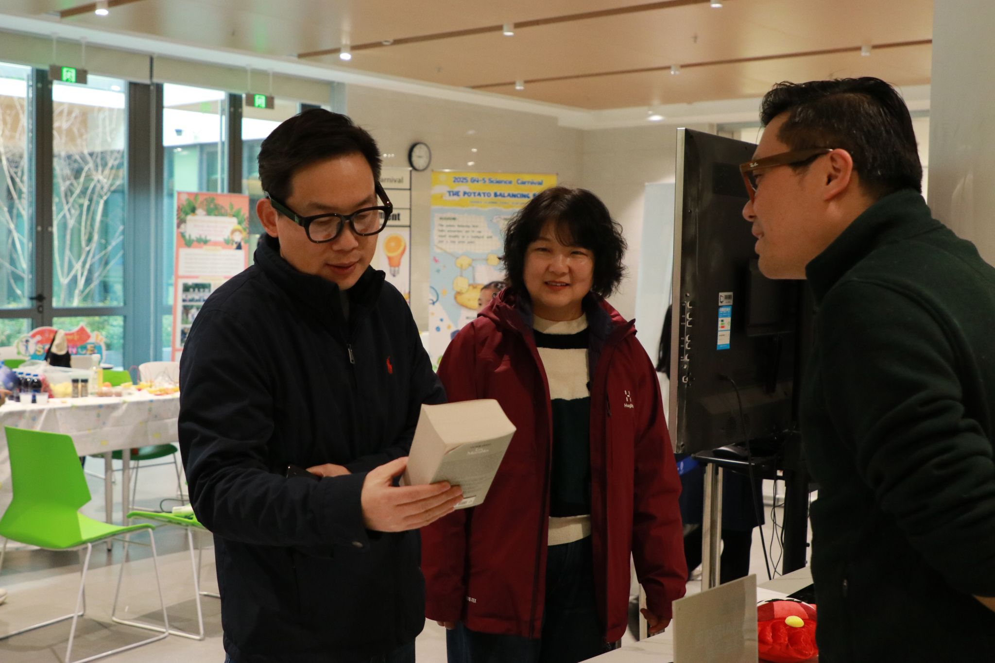 The student-led project exhibition area resembled a vibrant "science marketplace," with 60 booths showcasing students' curiosity-driven inquiry and creative energy. Topics ranged from robotics programming, circuit design, and electrostatic experiments to environmental initiatives such as upcycling waste materials, physics-based stuntcars, interactive energy transformation experiments, and intelligent cleaning robots.