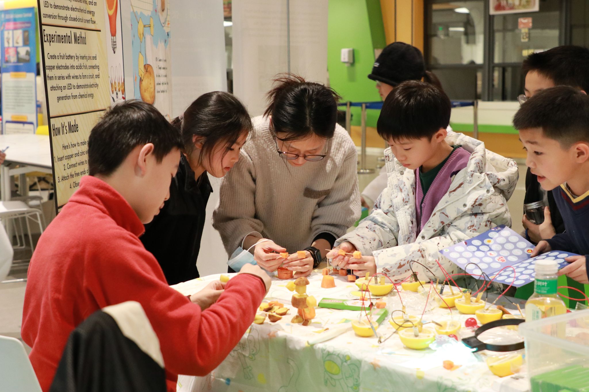 During Wednesday's science class, Grade 4 students constructed fruit batteries using various fruits. Through repeated adjustments of electrodes and substitutions of fruits, they ultimately succeeded in lighting up LEDs. The cheers that followed proved to be the most direct celebration of the scientific principle of chemical energy being converted into electrical energy.