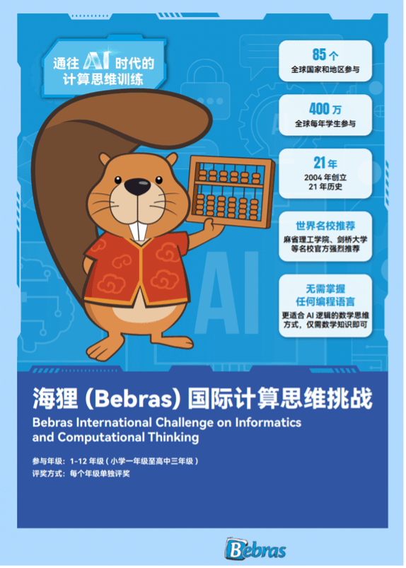 Founded in 2004 by Prof. Valentina Dagienė (Vilnius University, former IOI President), the Bebras Challenge is a global educational event on computational thinking and informatics for youth. Modelled on Olympiads, national organisers form a global committee to jointly develop and select annual question pools. Aimed at sparking interest in computer science, it trains problem-solving with logical thinking—no programming required. Questions link to real life, making abstract concepts concrete, allowing students without coding experience to use logic, induction, and math skills. In the AI era, computational thinking— a bridge between math, AI, and programming— is increasingly prioritised in global education, with Bebras serving as a key initiative to support this.