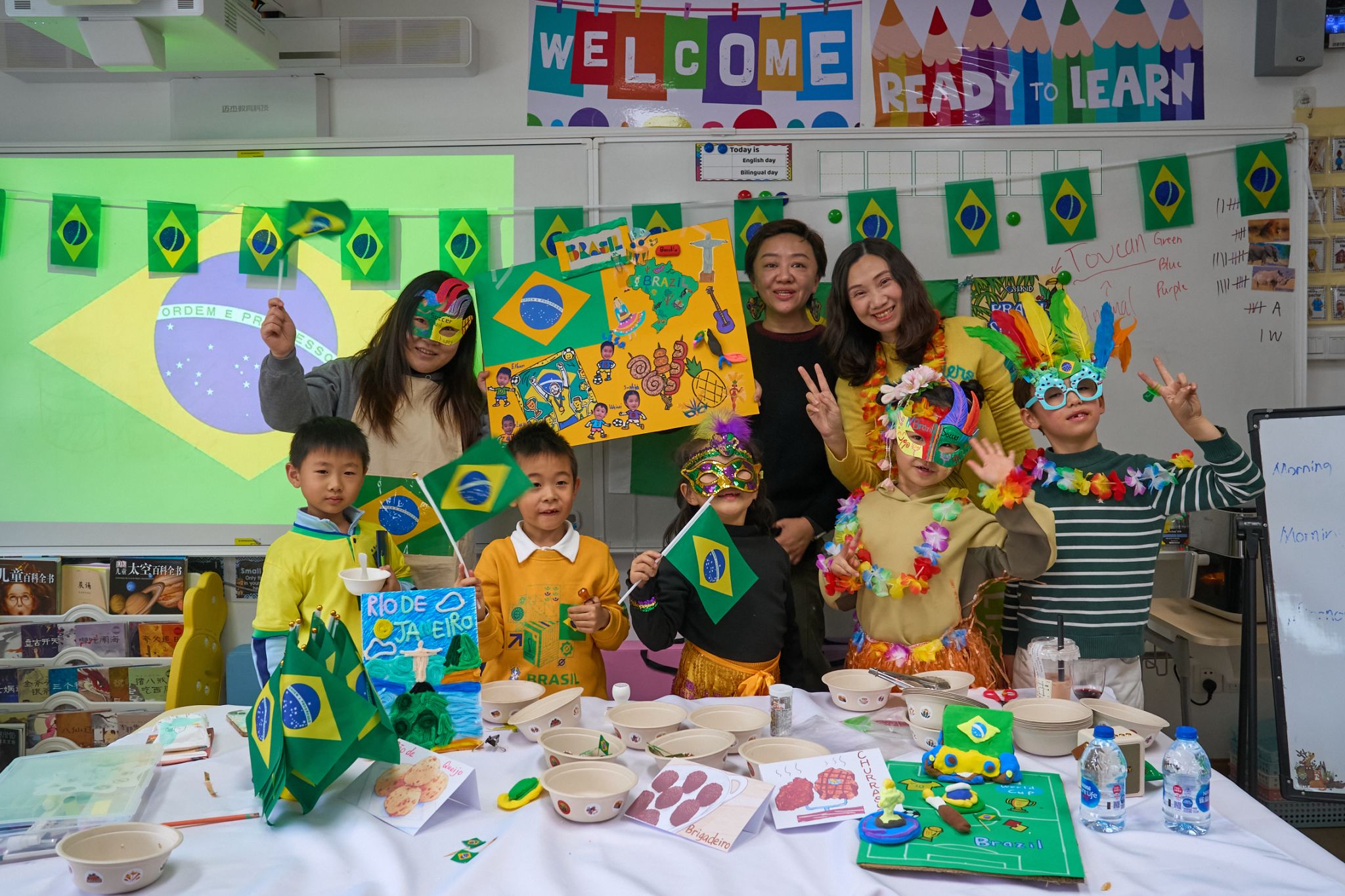The campus in Lingang took a trip to the southern hemisphere where they explored the countries of Australia and South Africa. Students filled out passports with information about the countries they explored, just like the Puxi and Hongkou campuses. Students learned about the traditional clothing, famous landmarks, and the sports that each country is proud of. For Australia, students bravely tasted a popular food spread from Australia called Vegemite, known for its strong flavor. Students who visited South Africa tried to sing in Afrikaans, one of its official languages!