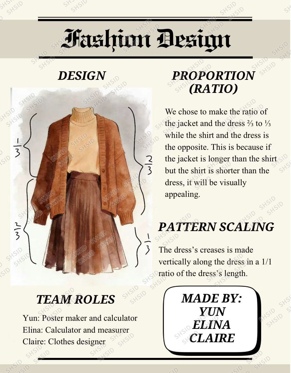 The second part of the project focused on exploring the role of proportions in clothing design. Students adjusted measurements, optimized designs, and demonstrated how proportions influence both functionality and visual appeal in design. Using imagination as their brush and scale as their palette, they crafted unique styles that were innovative and imaginative.