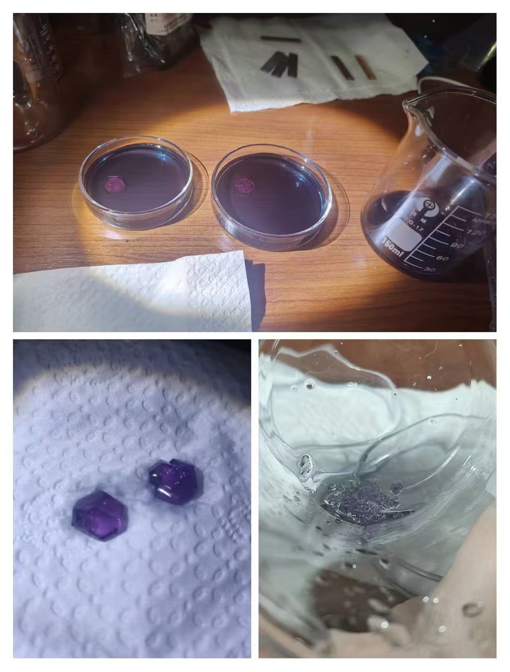 The “Golden Rain” experiment is a classic activity used to explore precipitation reactions in chemistry. Through this foundational experiment, students not only learn to recognize reaction phenomena, but also gain insight into the underlying principles of chemical change through controlled conditions and comparative trials. After completing the “Golden Rain” experiment, Grade 11 student Shani went a step further by independently designing and carrying out the “Blue Crystal Rain” experiment. By repeatedly adjusting crystallization conditions, she successfully produced blue crystals resembling a starry sky, deepening her understanding of dissolution, crystallization, and structural formation through hands-on exploration.