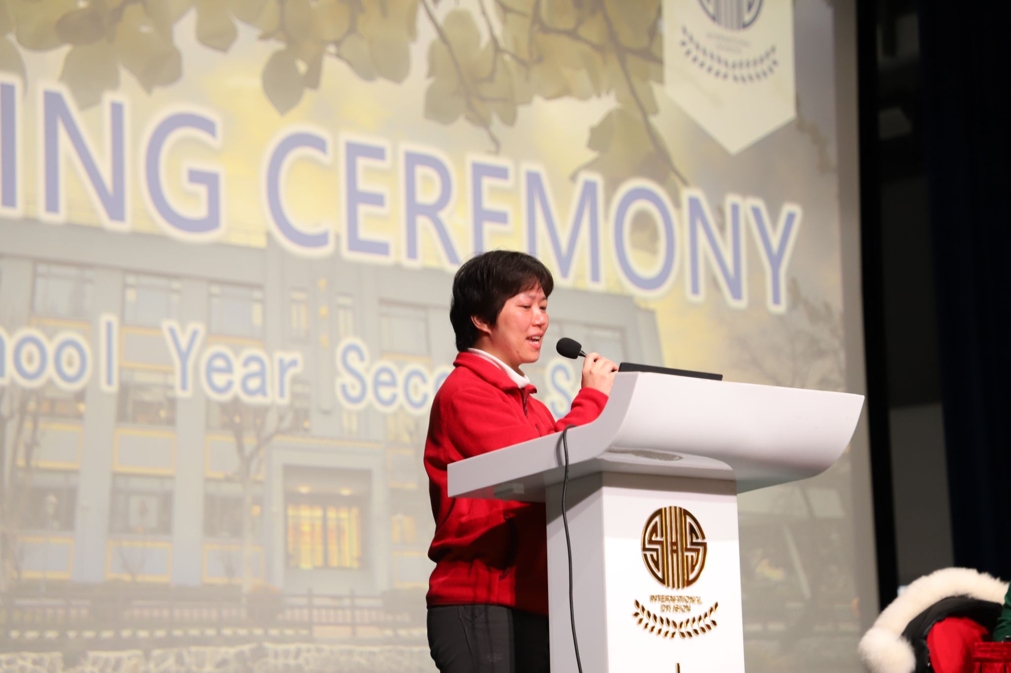 Alfie from Class 10(2), President of the Associated Student Body, delivered a speech reviewing the achievements of the past semester and sharing plans for the months ahead. He began by expressing sincere gratitude to teachers, ASB members, helpers, and students who supported school events and offered valuable suggestions. In the first semester of the 2025–26 school year, the ASB assisted in organizing major events including the Sports Meet, Circuscape, the English Speech Contest, and the “Welcome to Whoville” Christmas Lunch during Energy Day. Behind the scenes, members devoted tremendous effort—writing over 21,000 words in proposals, holding more than 25 meetings, and coordinating ticket sales and event preparations. Alfie highlighted the collaboration among different departments, whose dedication ensured each activity ran smoothly. Looking forward, he announced the return of Summer Bash and Knowledge Knockout. He encouraged everyone to actively participate, continue sharing ideas through the suggestion box, and make this semester meaningful through involvement and teamwork.