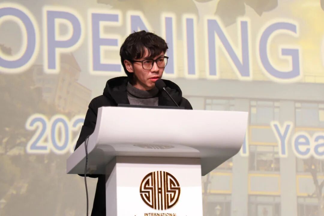Grade 10 teacher Mr. Zhuang took the stage next, praising the grade’s various volunteer teams for their contributions in maintaining campus order and atmosphere. He then offered students a preview of the second semester, introducing Mix Day and encouraging students to actively participate in said event, and finally wishing everyone a fulfilling semester.