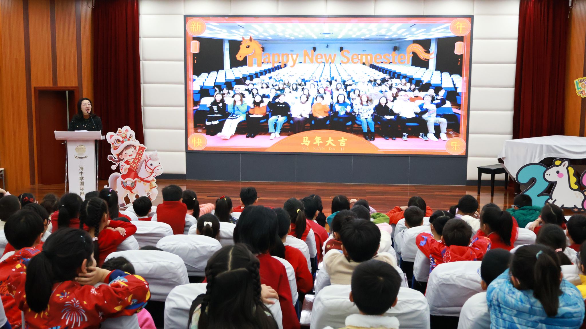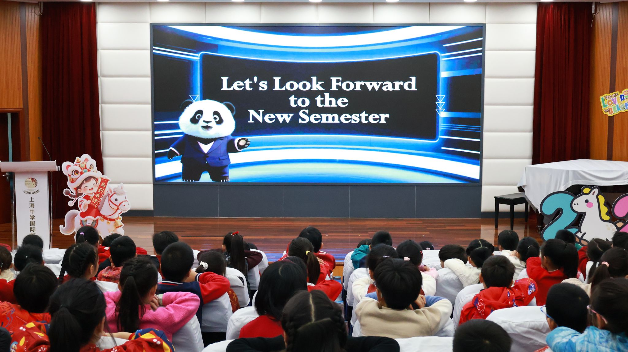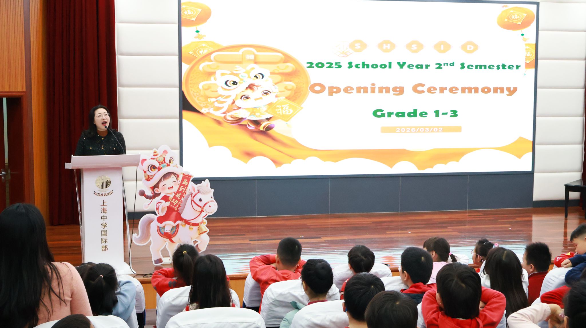 On the morning of March 2nd, teachers and students from Grades 1-3 of SHSID Puxi Campus gathered in the auditorium for the Opening Ceremony of the 2025 School Year Second Semester, accompanied by cheerful music. The ceremony was hosted by Ms. Zhang Yi, Director of SHSID Puxi Campus Grade 1-3, in a warm and welcoming atmosphere.