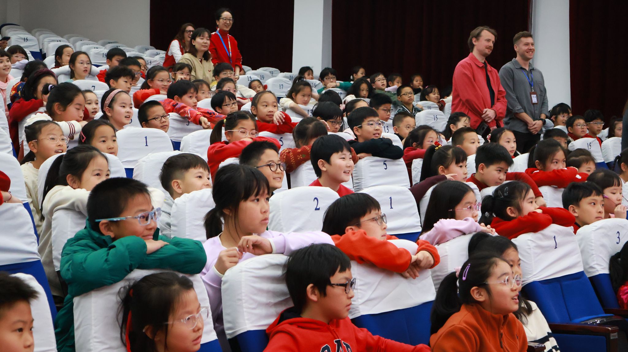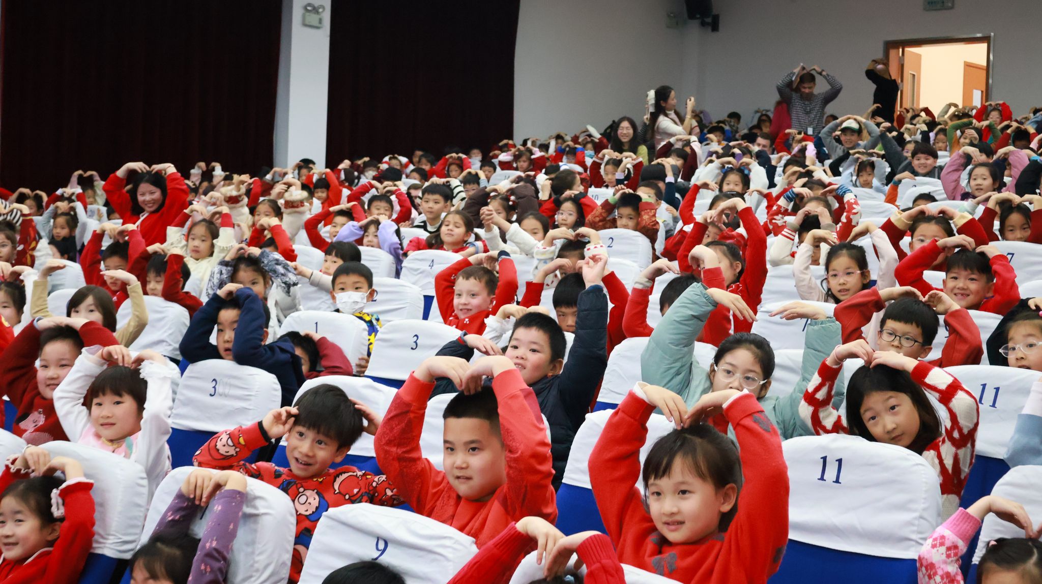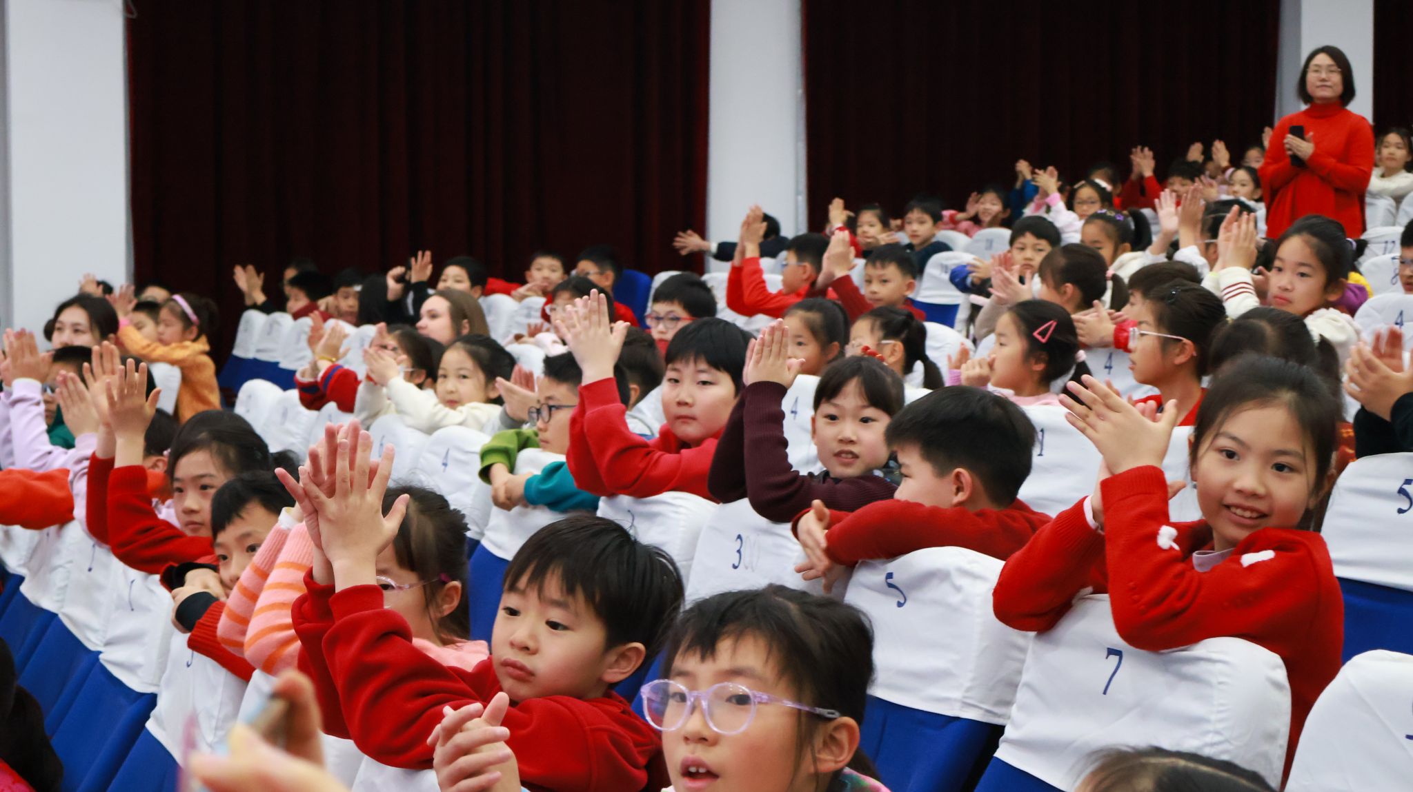 After the student speeches, all teachers and students watched a "Division Highlights" video together. The screen flashed with wonderful moments from the previous semester, including Sports Week, the Art Festival, Authors Week, and Math Week. Everyone immersed themselves in laughter and warm memories. Ms. Zhang Yi invited students to show their love for these activities with hand gestures and expressed sincere gratitude to the dedicated teachers who made those moments possible.