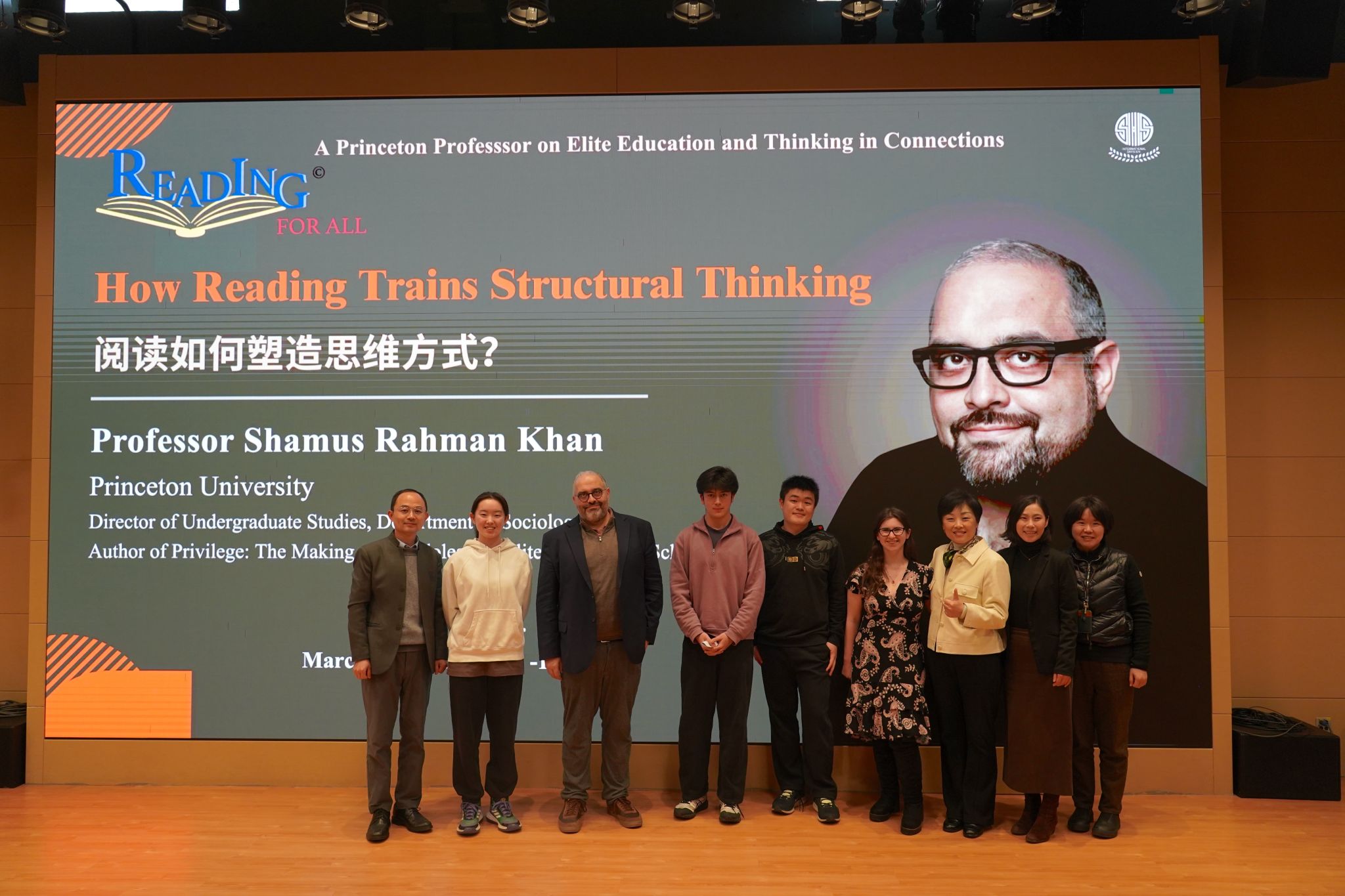 During the Reading-for-All Month activities, our school welcomed Professor Shamus Khan from Princeton University on March 12. He gave the keynote lecture titled How Reading Trains Structural Thinking.