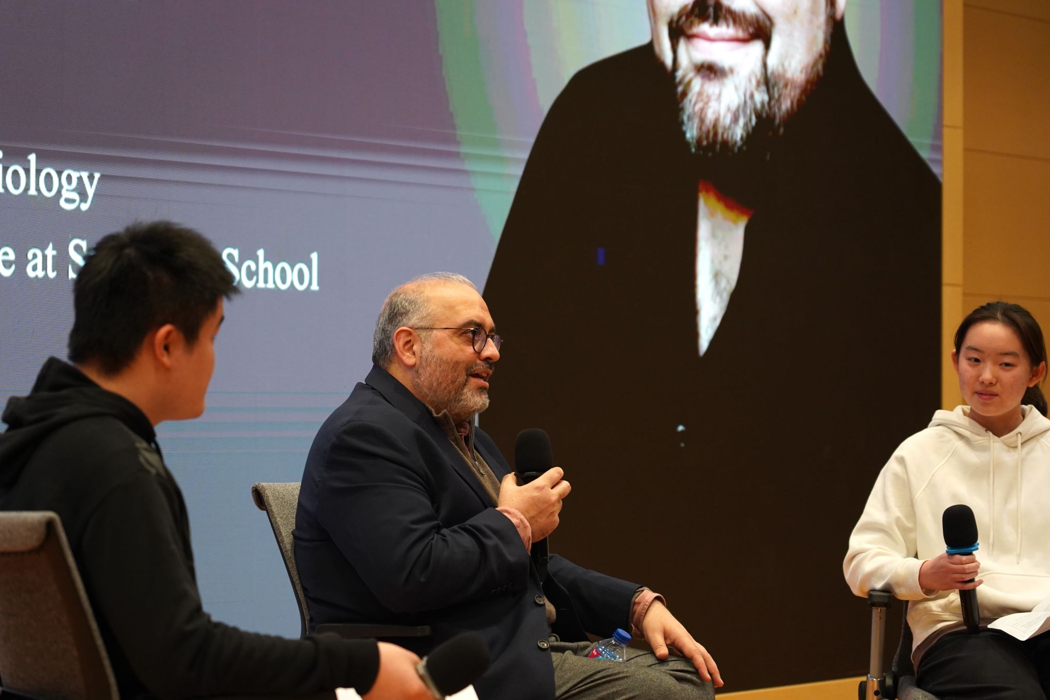 Students in the audience also joined the discussion. When talking about research methods, Professor Khan said that it is not always necessary to use many methods. Students should first learn different ways of thinking and then choose the best method for their research.