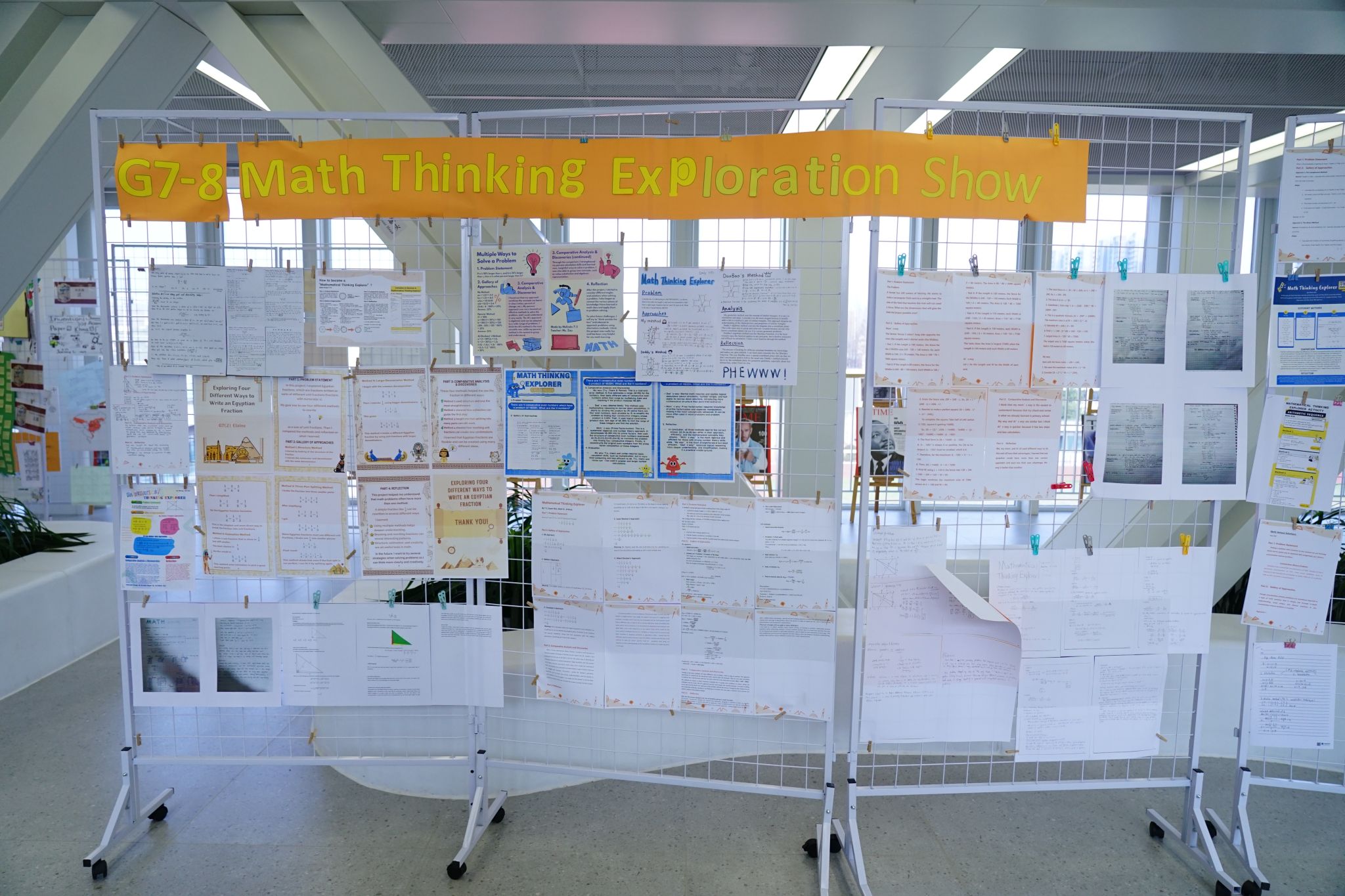 Alongside the activities, two exhibitions of outstanding student work were displayed on the fourth floor of the Hsi Building: "Mathematics Kaleidoscope— Connecting the World with Geometry" and the Grades 7-8 "Math Thinking Exploration" project.