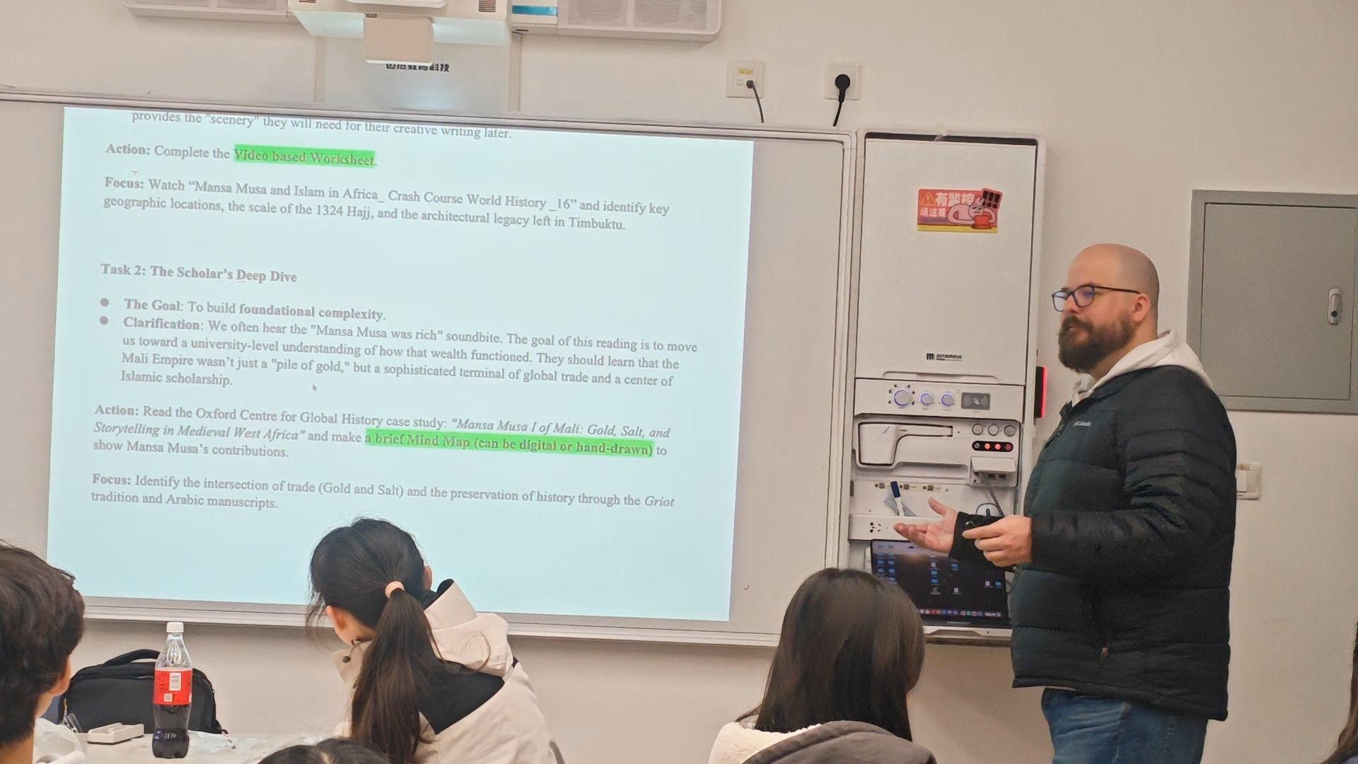 The theme of this collaboration centered on Mansa Musa, the king of the ancient West African Mali Kingdom. He is renowned worldwide for his immense wealth, devout pilgrimage, and strong support for infrastructure development as well as educational and cultural initiatives. History teachers have laid the groundwork through a series of progressive activities—including decision-making games, video-based Q&A sessions, in-depth case study reading & mind map making, and HIPP analysis—to help students establish a foundational understanding of the Mali Kingdom and Mansa Musa, while also expanding their knowledge. The final assignment for the project is to write three diary entries from Mansa Musa’s perspective, covering three distinct phases: before, during, and after his pilgrimage. The history teachers raised some questions from their own perspective, as well as potential challenges students might face, such as: What techniques do you suggest to prevent students from simply listing the day's events? How do we encourage them to reveal Mansa Musa’s private anxieties or spiritual doubts that wouldn't appear in a royal chronicle? How can we help students develop a tone that feels both “regal” and “pious”? How do we guide students to write about wealth without sounding "braggy"? How should the prose style evolve across the three entries?