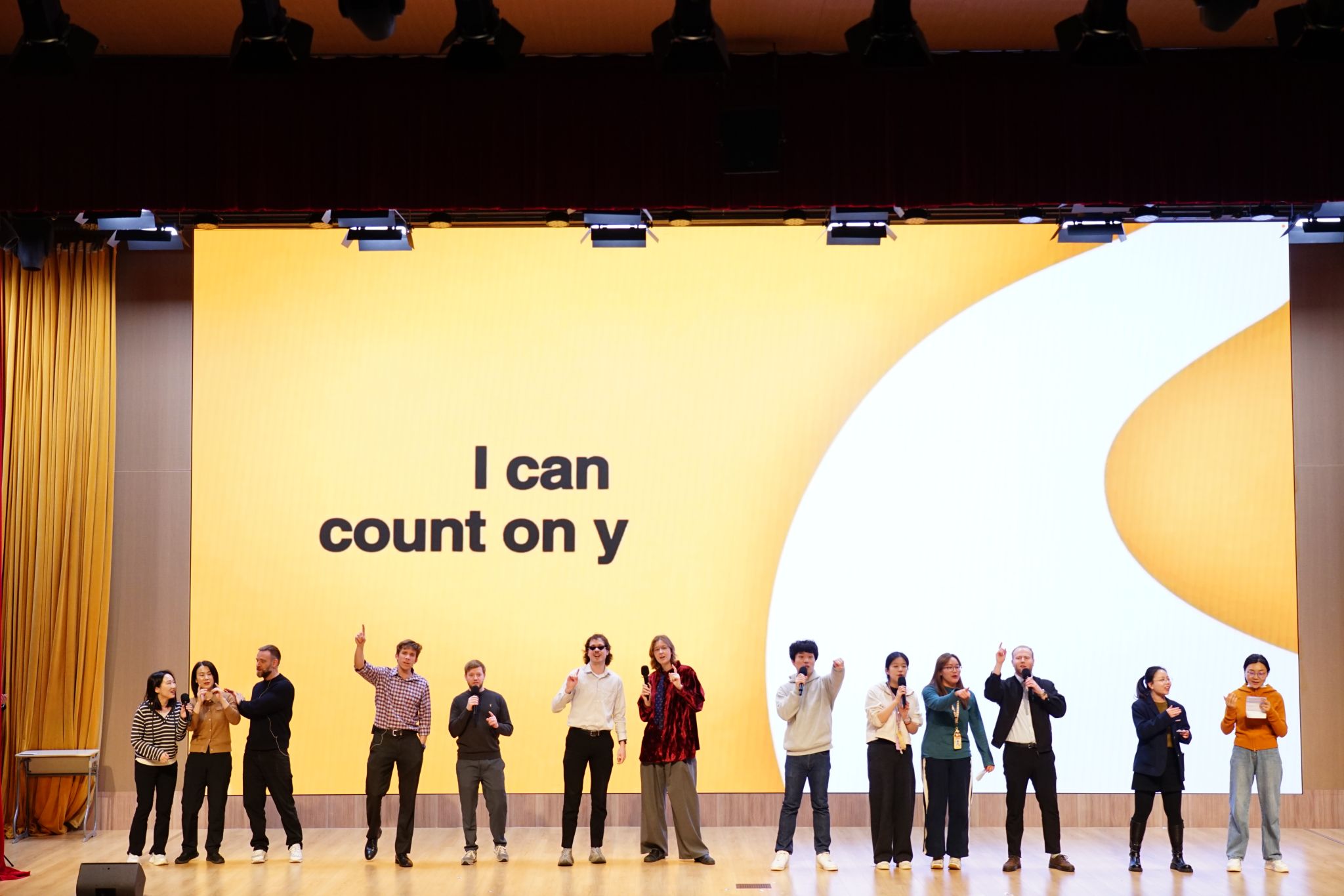 In the warm and lively atmosphere, the show concluded with a special teacher performance. Chinese and foreign teachers took to the stage to sing “Count on Me.” The pleasant melody, light rhythm, and heartfelt emotion not only energized the audience but also conveyed the teachers’ enduring care and support for their students.