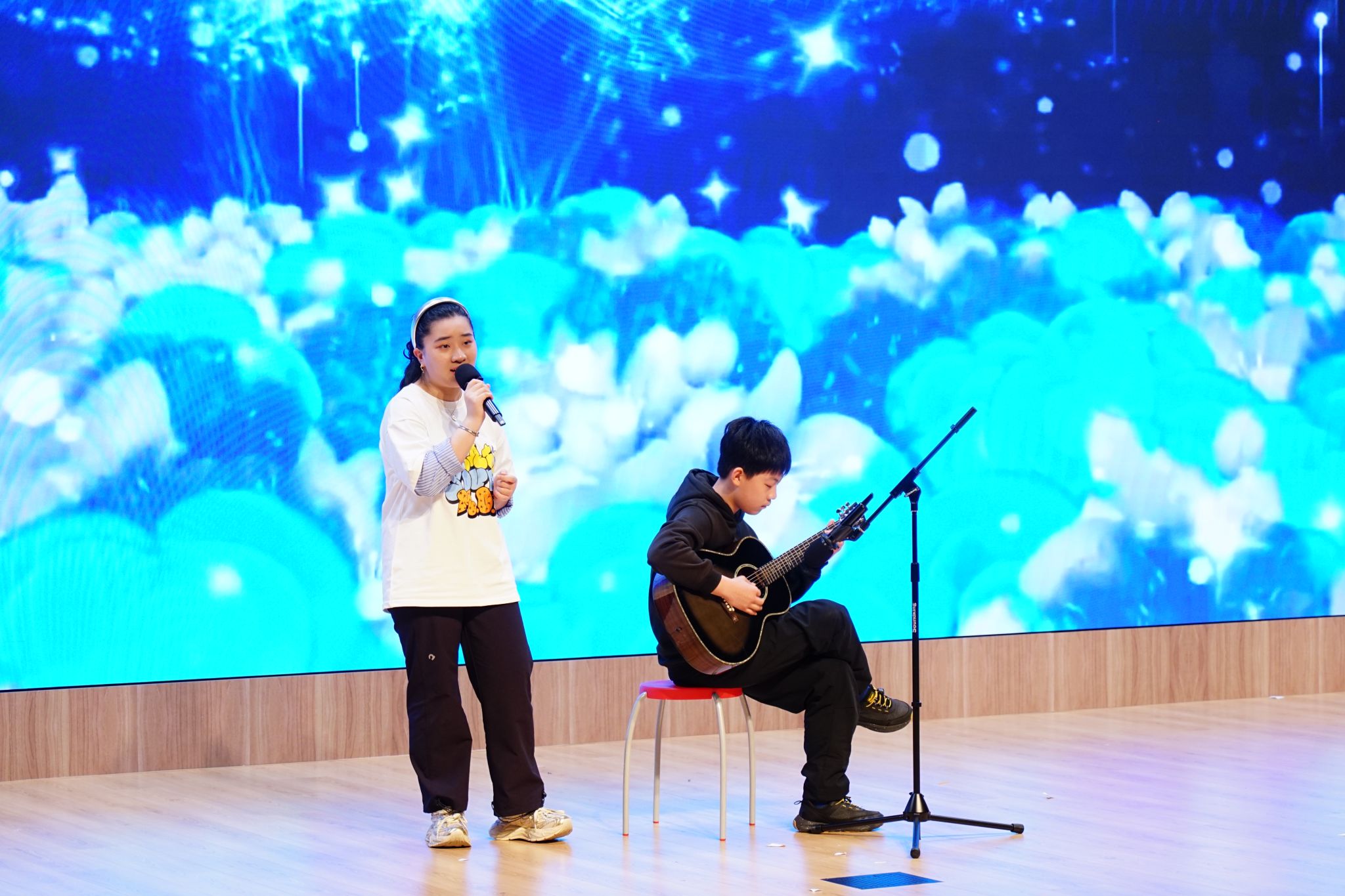 The vocal performances were equally captivating. Angela and Zoe performed “Bu Guo Shi Xiang” and “Ji Fen Zhi Ji,” delivering fresh and natural vocals that beautifully captured the emotions of youth, along with strong stage presence. Evan’s musical theatre piece “You’ll Be Back” stood out for its distinctive style and expressive performance, earning rounds of laughter and applause.