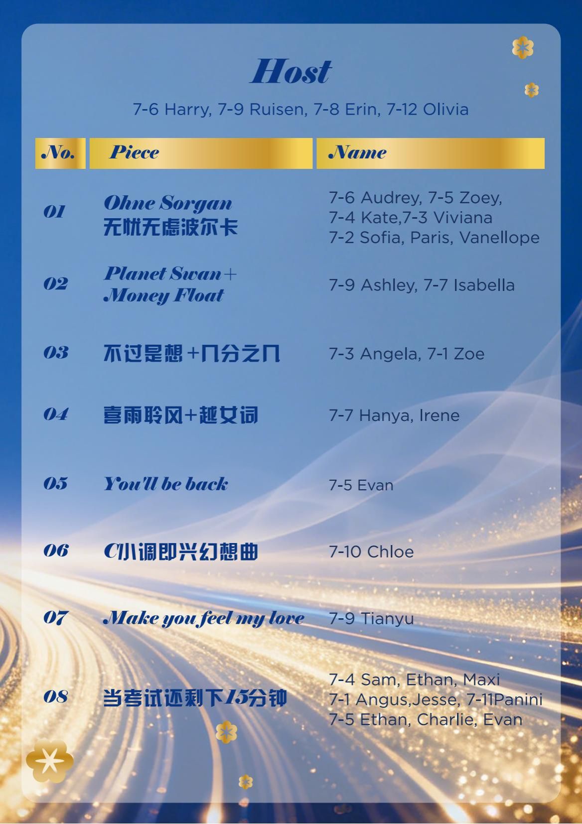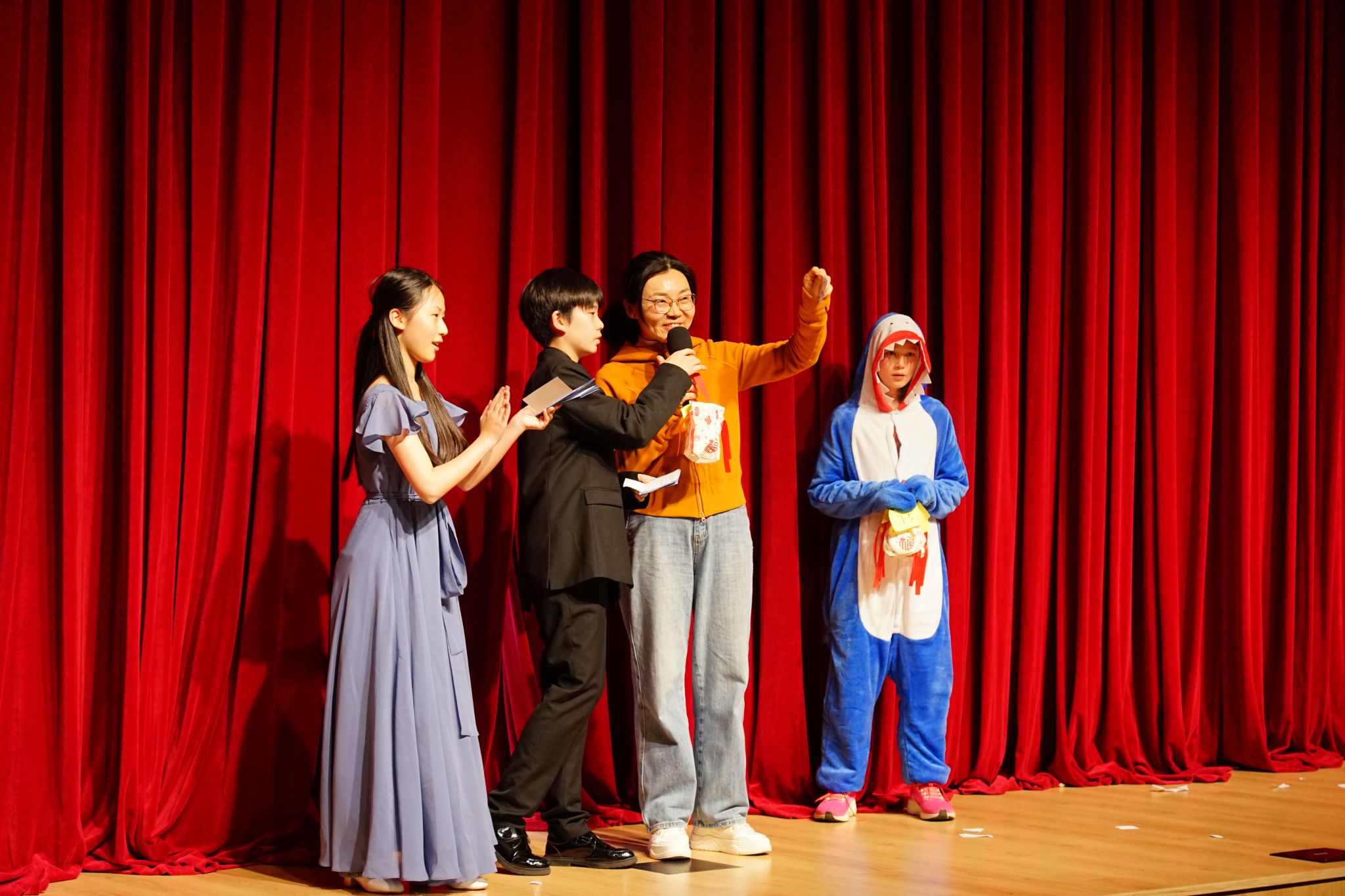 Creative acts added unique highlights to the show. The skit “ The Last 15 Minutes in the Exam,” performed by Sam, Ethan, Maxi, Angus, Jesse, Charlie, Evan, and Panini, was inspired by school life. Its humorous and lively performance drew continuous laughter and applause.