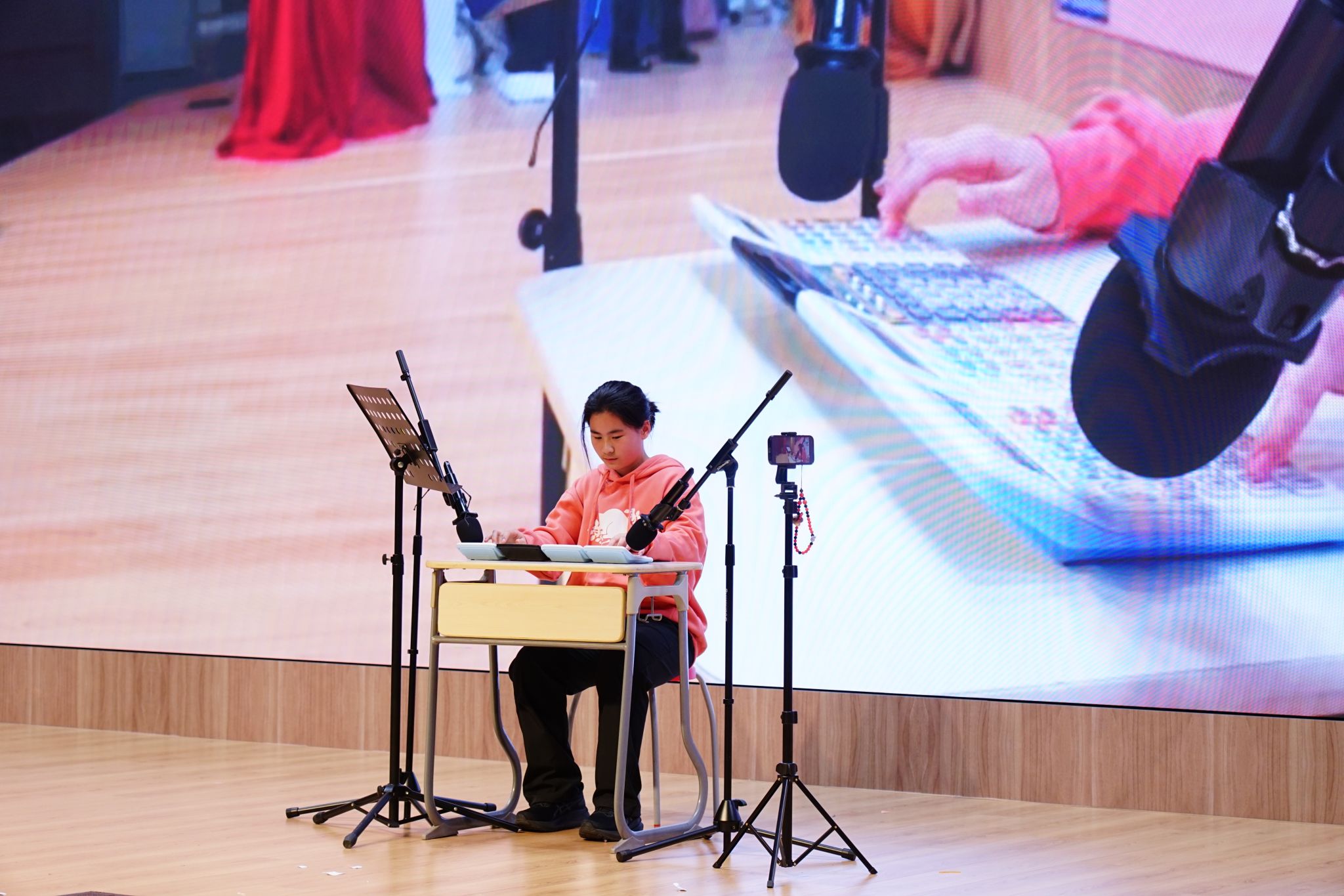 In the singing-with-instrument segment, the blend of instrumental melodies and vocals created a deeply engaging atmosphere. Tianyu’s piano-and-vocal performance of “Make You Feel My Love” offered a warm and delicate interpretation, creating a calm and touching moment. Ivy and Jeffery Z’s guitar performance of “Farewell Blooms into Flowers” moved the audience with its lively melody and passionate singing.