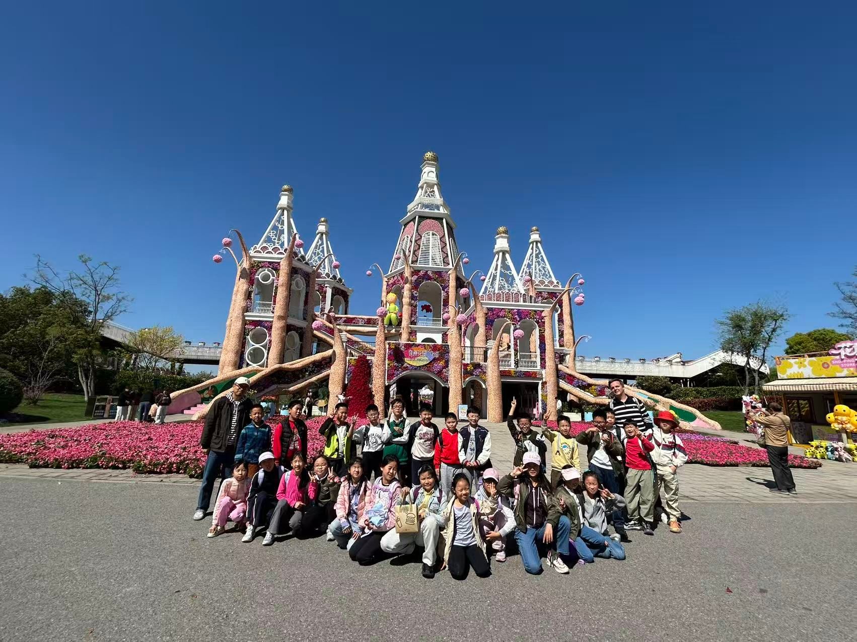Stepping into the park, the beautiful spring scenery unfolds before our eyes, and deep within each of us lies our very own B612 planet. First, everyone arrived at the Little Prince-themed flower exhibition, “The Miracle of Love and Flowers.” Countless flowers bloom in a staggered arrangement, meticulously crafted into various fantastical fairy-tale shapes. Vibrant and lifelike, it’s as if a fairy-tale world has been brought to life in a sea of flowers. The students paused to admire the display, murmuring their admiration, and took photos amidst the floral fragrance and childlike whimsy, creating a delightful contrast between the radiant spring scenery and their innocent smiles.