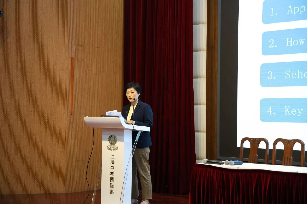 The parents’ meeting began with all attendees gathering in the Annex Auditorium of Xianmian Building. First, Ms. Cui from the College Counseling Office took the stage. She outlined key milestones and resource strategies for the application season, helping families establish a scientific and clear action framework. Subsequently, Ms. Zhang Li, Vice Principal of High School, shared insights on the core principles and strategies of college applications. She explained the importance of application integrity, and further guided parents and students to understand that a so-called "competitive personal profile" is essentially a natural presentation of students’ personal growth. She also reminded parents that the college application process is more of a growth journey—one where they accompany their children to learn responsibility, develop planning skills, and build resilience against stress.