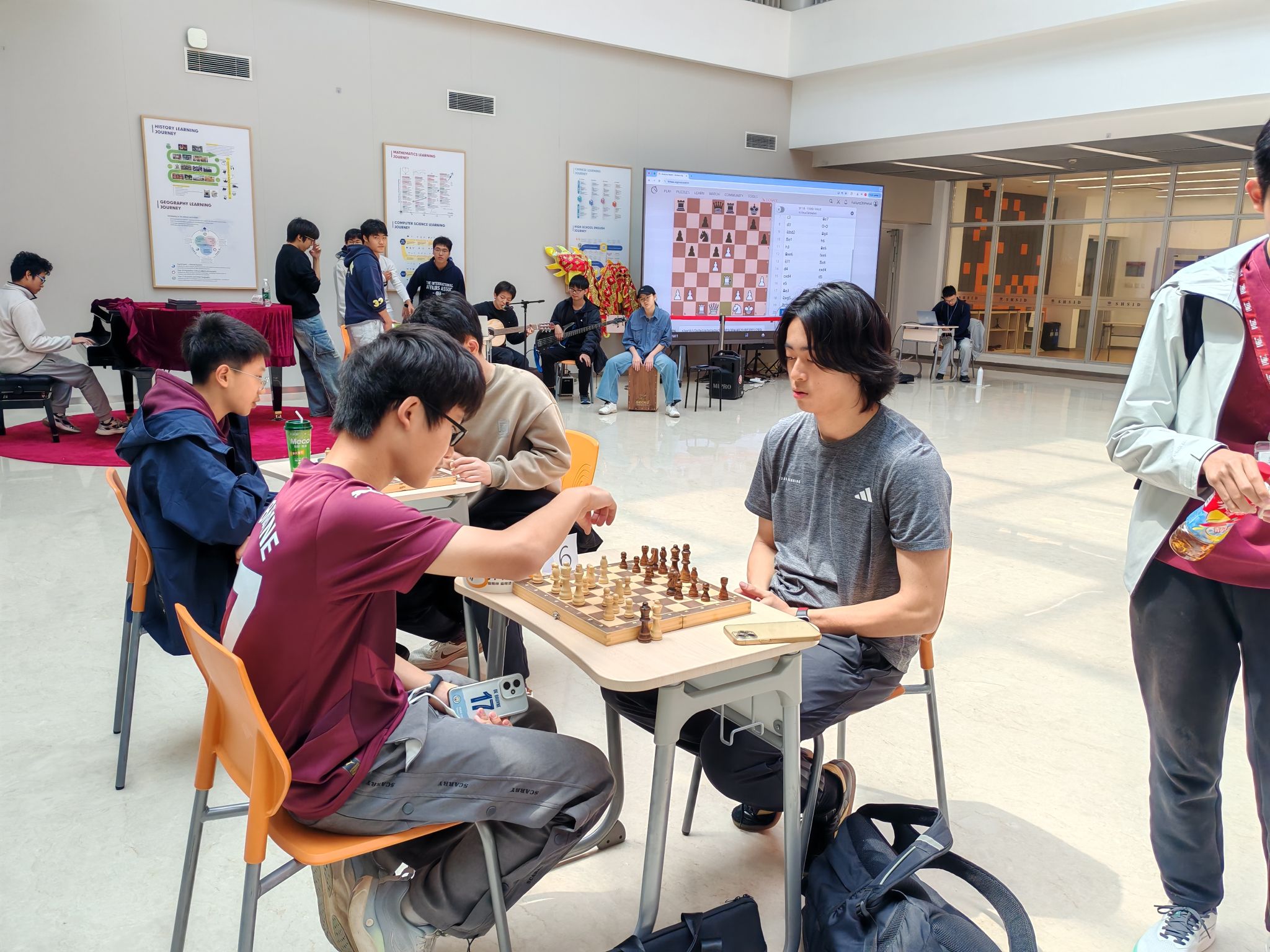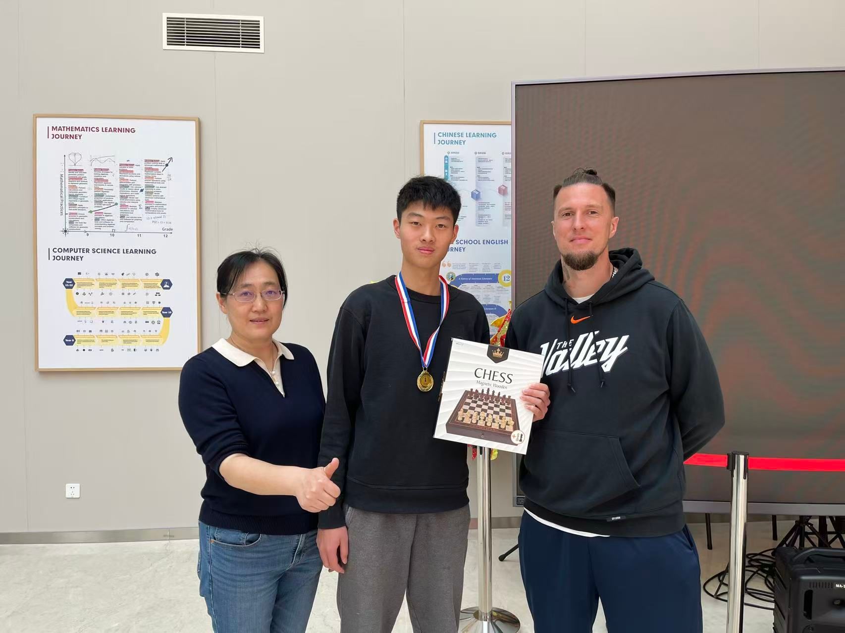 At the end of the tournament, an award ceremony was held. The champion, first runner-up, and second runner-up of the student competition stepped onto the stage to receive honors and prizes. Beyond improving chess skills and critical thinking, students broadened their horizons and made new friends through communication. Organized independently by students and joined by teachers, this event offered a refreshing break from heavy schoolwork and embodied SHSID’s vision of well-rounded growth and character-building through activities.